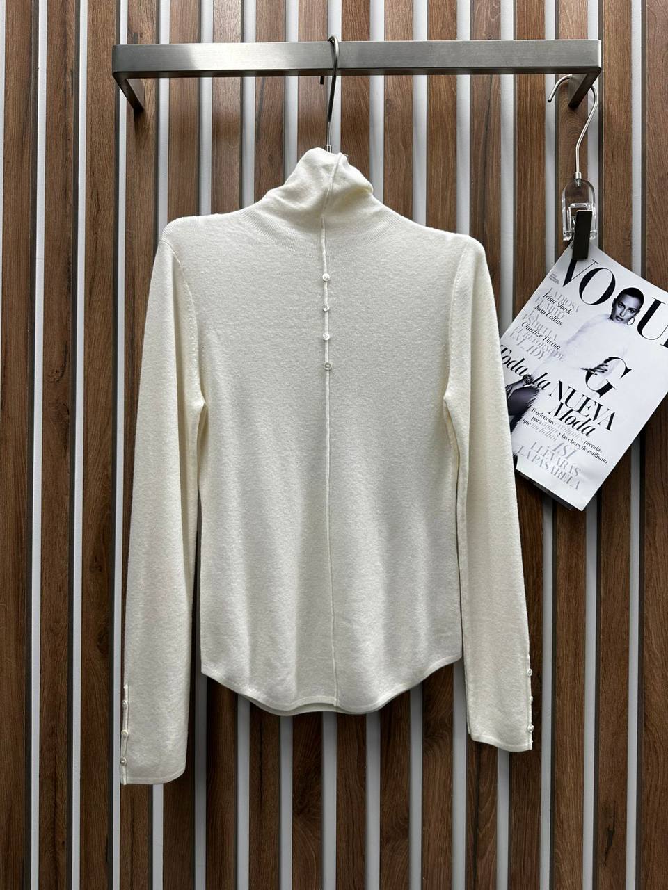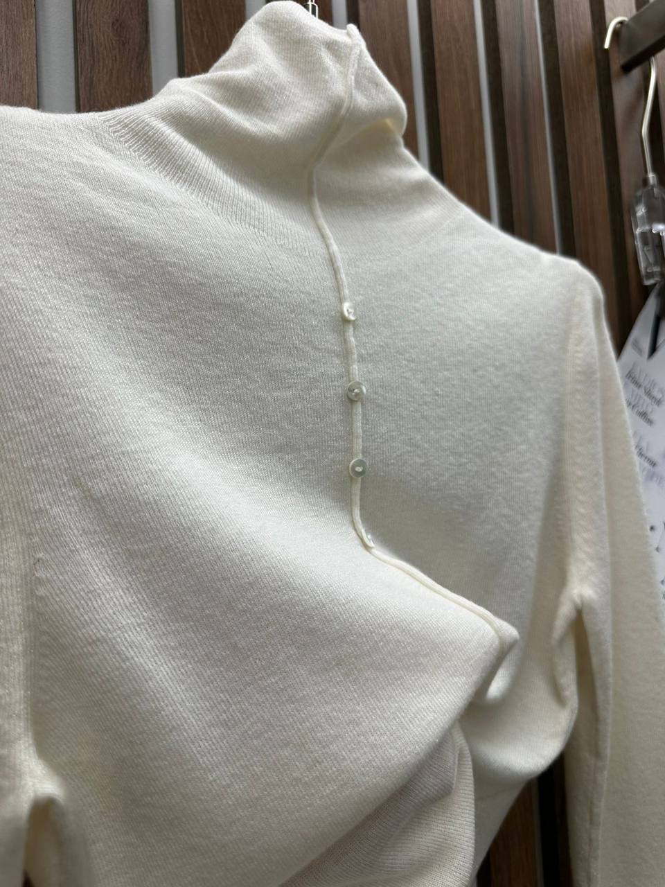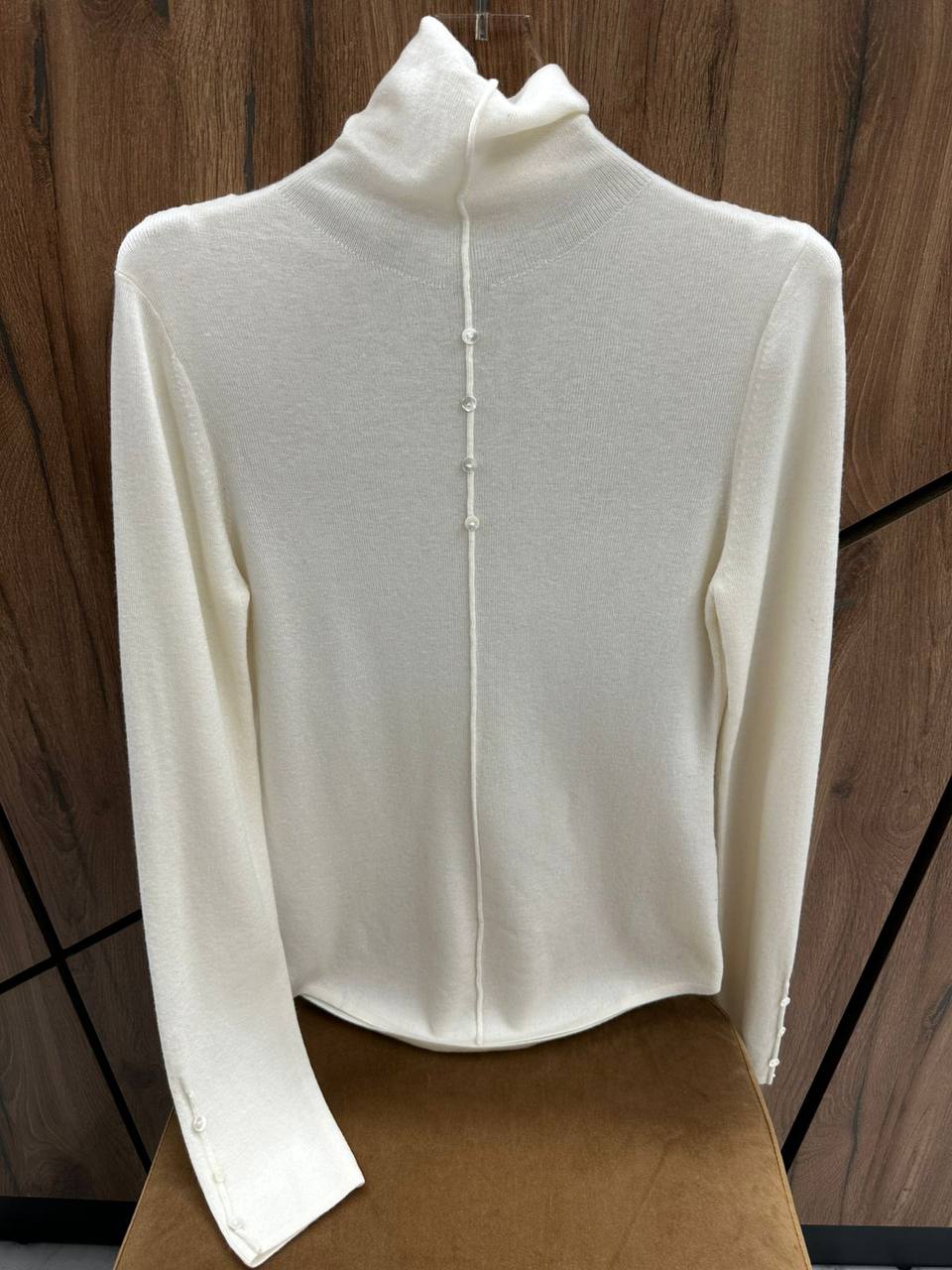 Лонгслив BMS-150710 - это элегантная и утонченная модель с высоким воротником и застежкой на пуговицы сзади. Идеально подходит для создания стильных и комфортных образов.