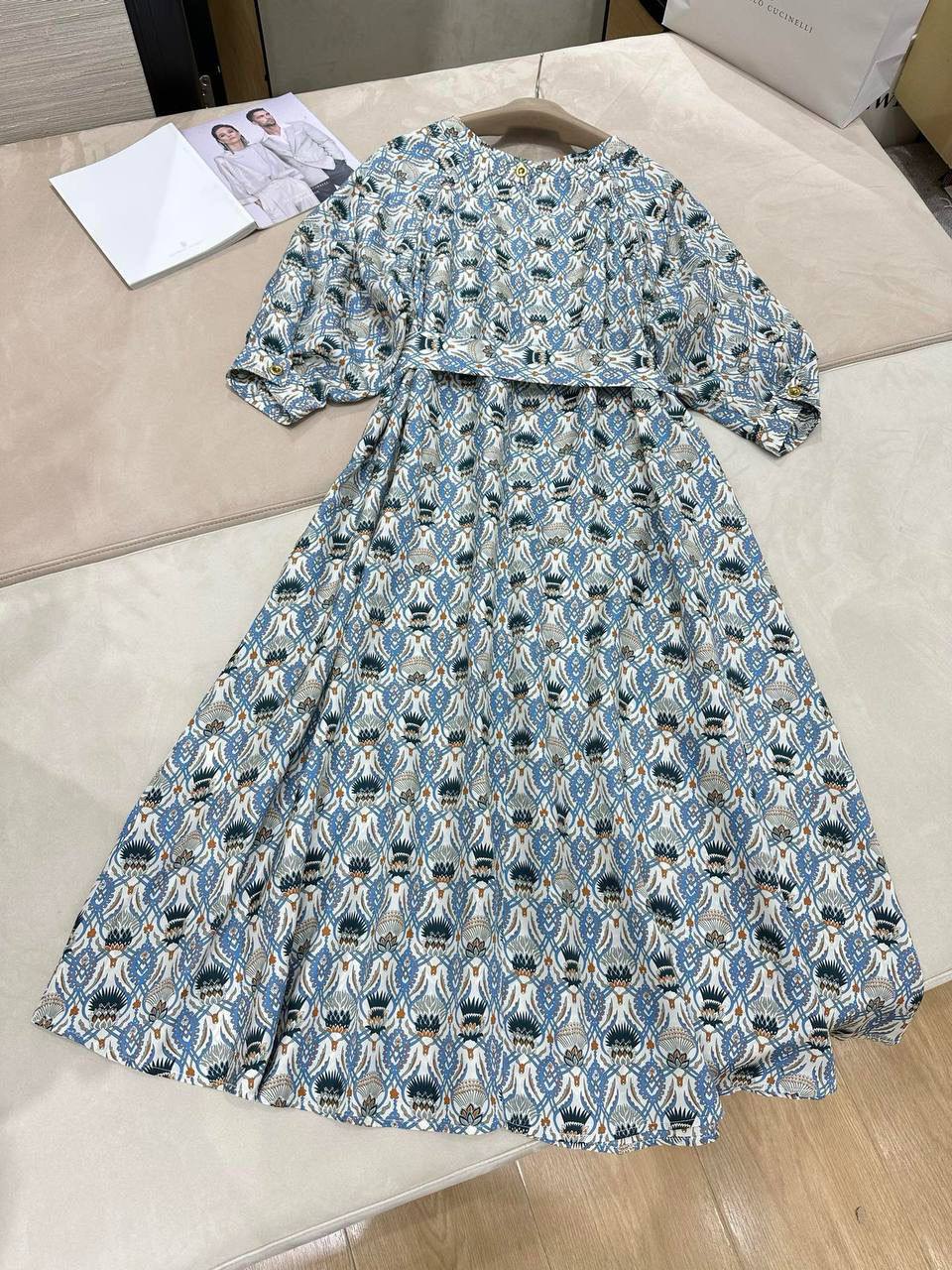 Платье Loro Piana BMS-155741 - это элегантное и стильное платье, которое идеально подходит для создания женственного образа. Платье с поясом подчеркивает талию, а узор добавляет наряду изюминку.