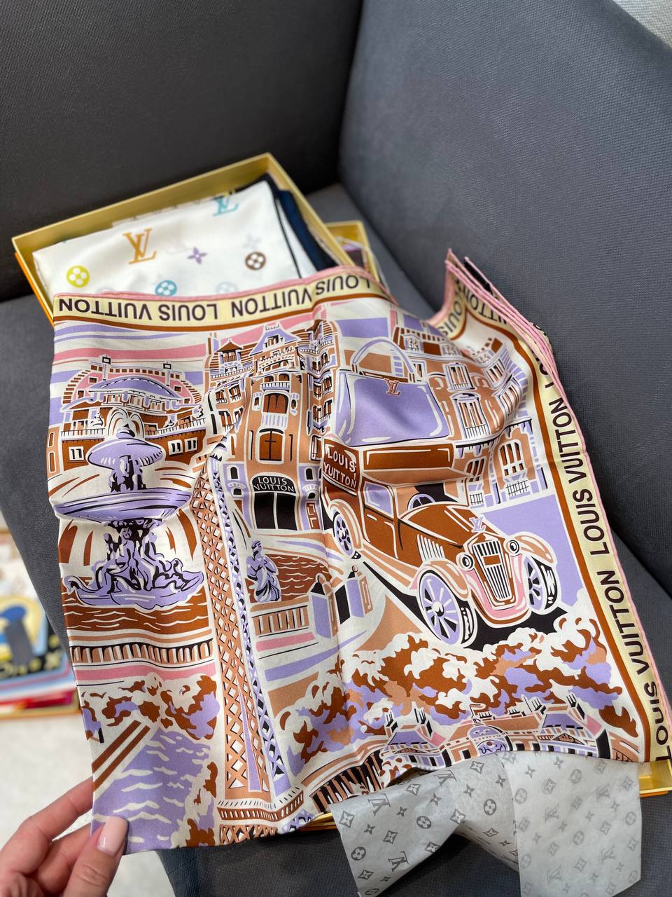 Платок Louis Vuitton BMS-155990 – это элегантный аксессуар, который добавит изысканности любому образу. Дизайн платка сочетает в себе классические элементы бренда и современные мотивы.