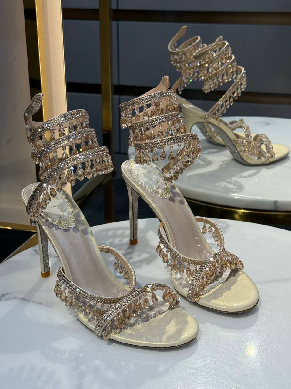 Босоножки Rene Caovilla BMS-156648 – это роскошный и элегантный выбор для особых случаев. Они сочетают в себе изысканный дизайн и высокое качество исполнения, что делает их незаменимым дополнением к вечернему наряду.
