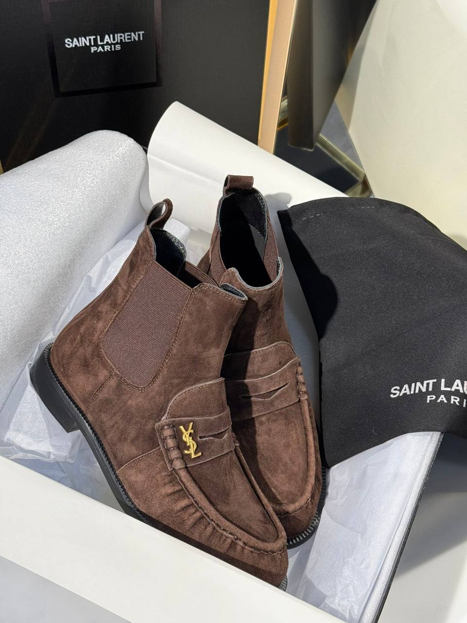 Ботинки Yves Saint Laurent BMS-153947 – стильная модель челси с элегантным дизайном. Эта обувь сочетает в себе комфорт и изысканность, идеально подходя для создания модных образов.