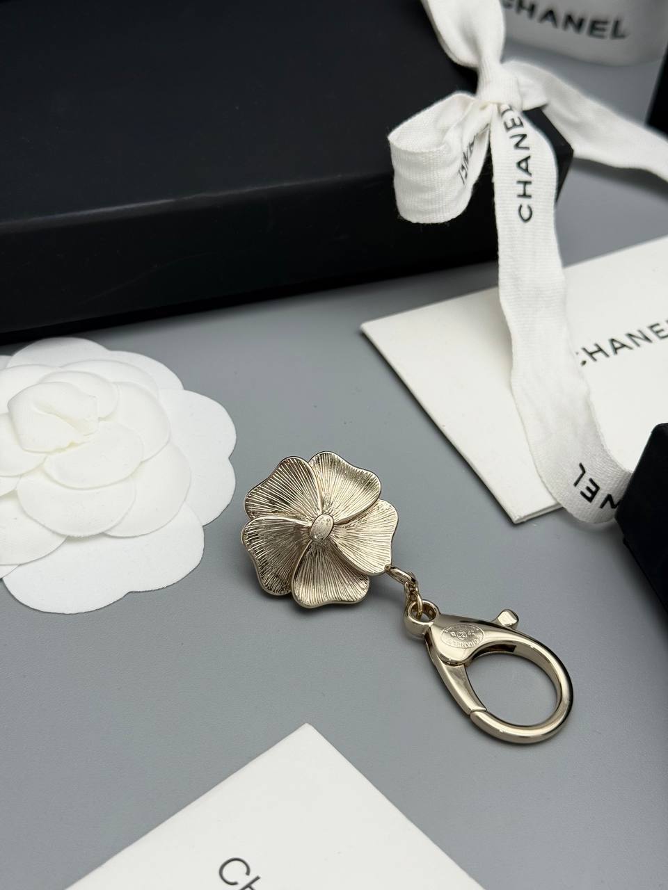 Брелок Chanel BMS-153323 - это стильный и элегантный аксессуар, который придаст неповторимый шарм вашей сумке или ключам. Изысканный дизайн в виде камелии с жемчужиной делает его прекрасным дополнением к любому образу.