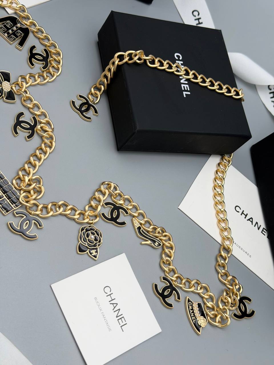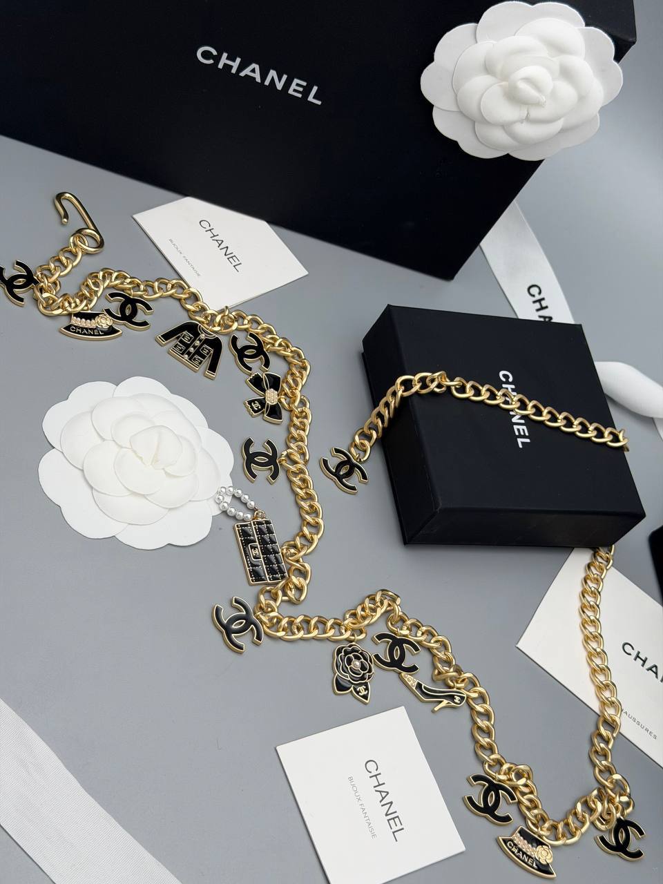 Пояс Chanel BMS-154949 - это эффектный аксессуар, который подчеркнет ваш стиль. Он выполнен в виде цепи с различными подвесками в виде логотипов бренда.