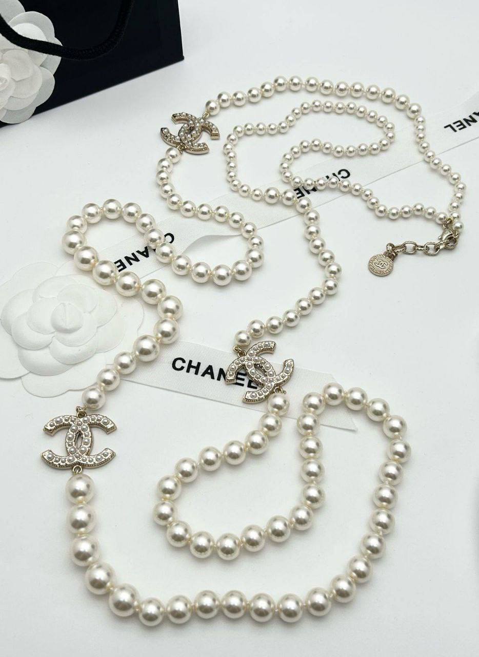 Элегантные бусы от Chanel - это изысканный аксессуар, который добавит шарм любому образу. Многослойное украшение с жемчугом и фирменными элементами логотипа Chanel.