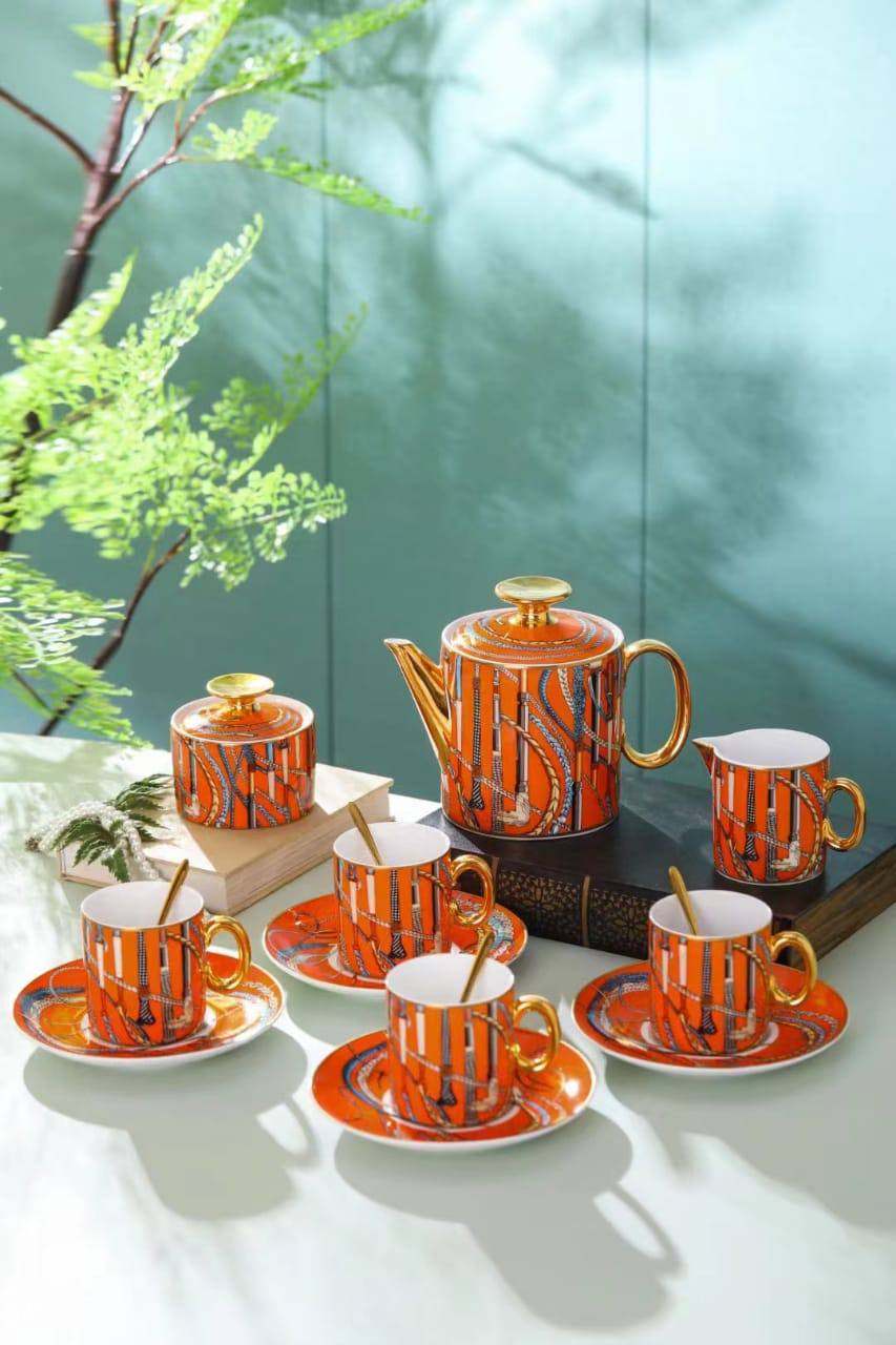 Чайный сервиз Hermes BMS-154729 — это изысканный набор посуды, который привнесет элегантность и стиль в любое чаепитие. Сервиз выполнен в ярком оранжевом цвете с оригинальным узором.