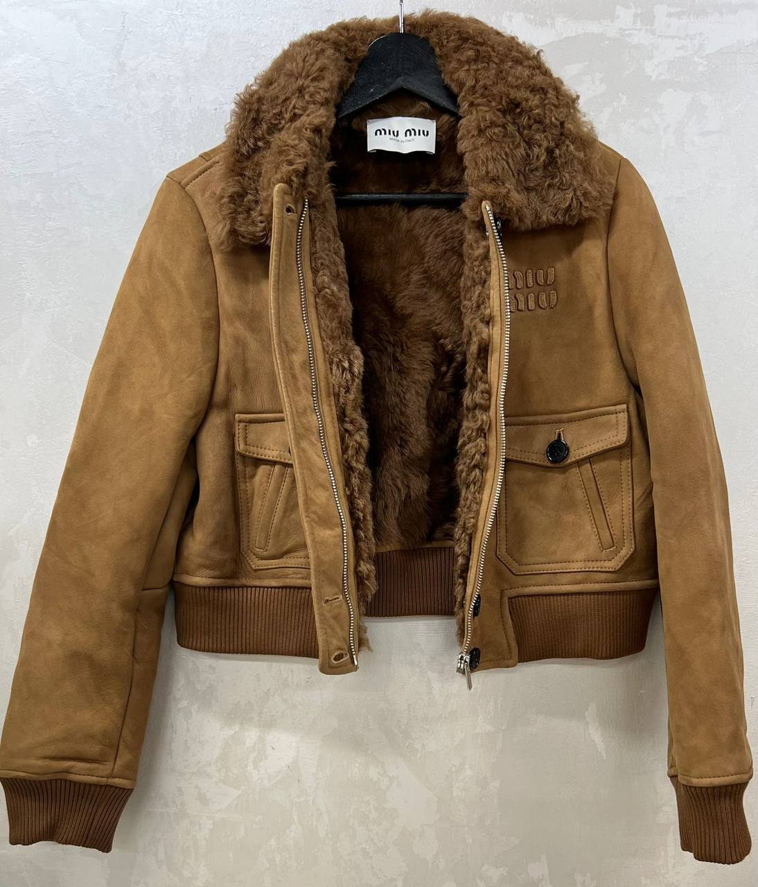 Дубленка Miu Miu BMS-150670 выполнена в стиле авиатора и сочетает в себе комфорт и элегантность. Модель из натуральных материалов, с мягким меховым воротником и логотипом бренда.