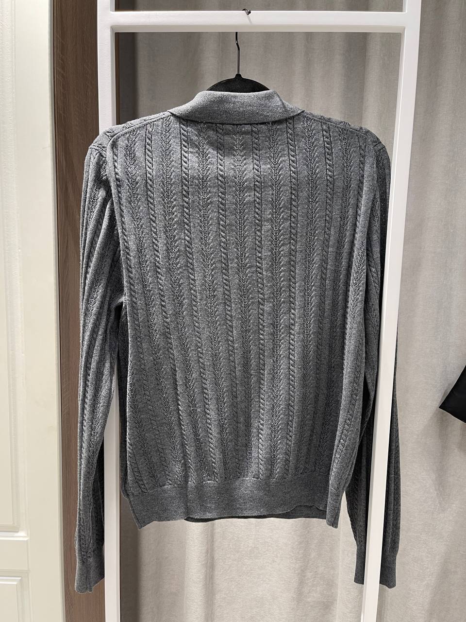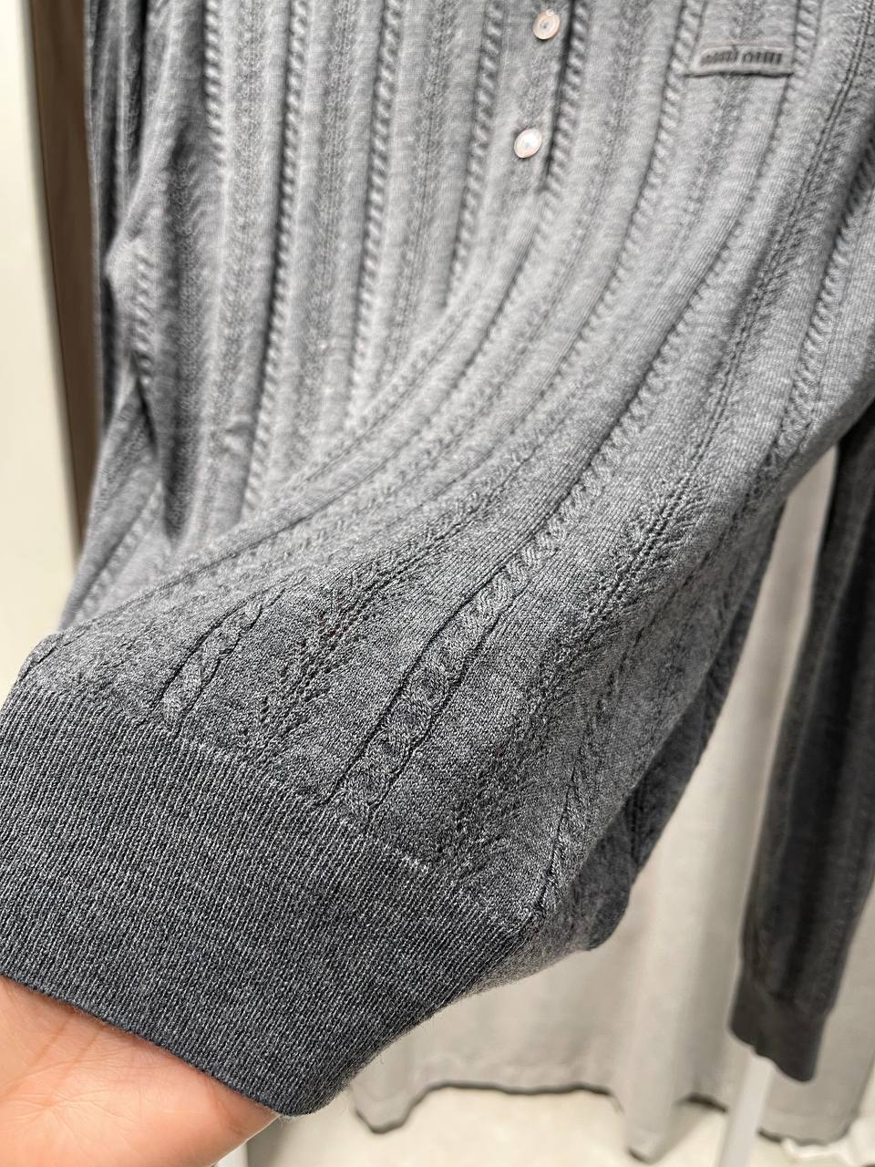 Джемпер Miu Miu BMS-150394 – это стильный и утонченный элемент гардероба. Серый цвет и ажурная вязка придают ему элегантность, а классический крой делает его универсальным.