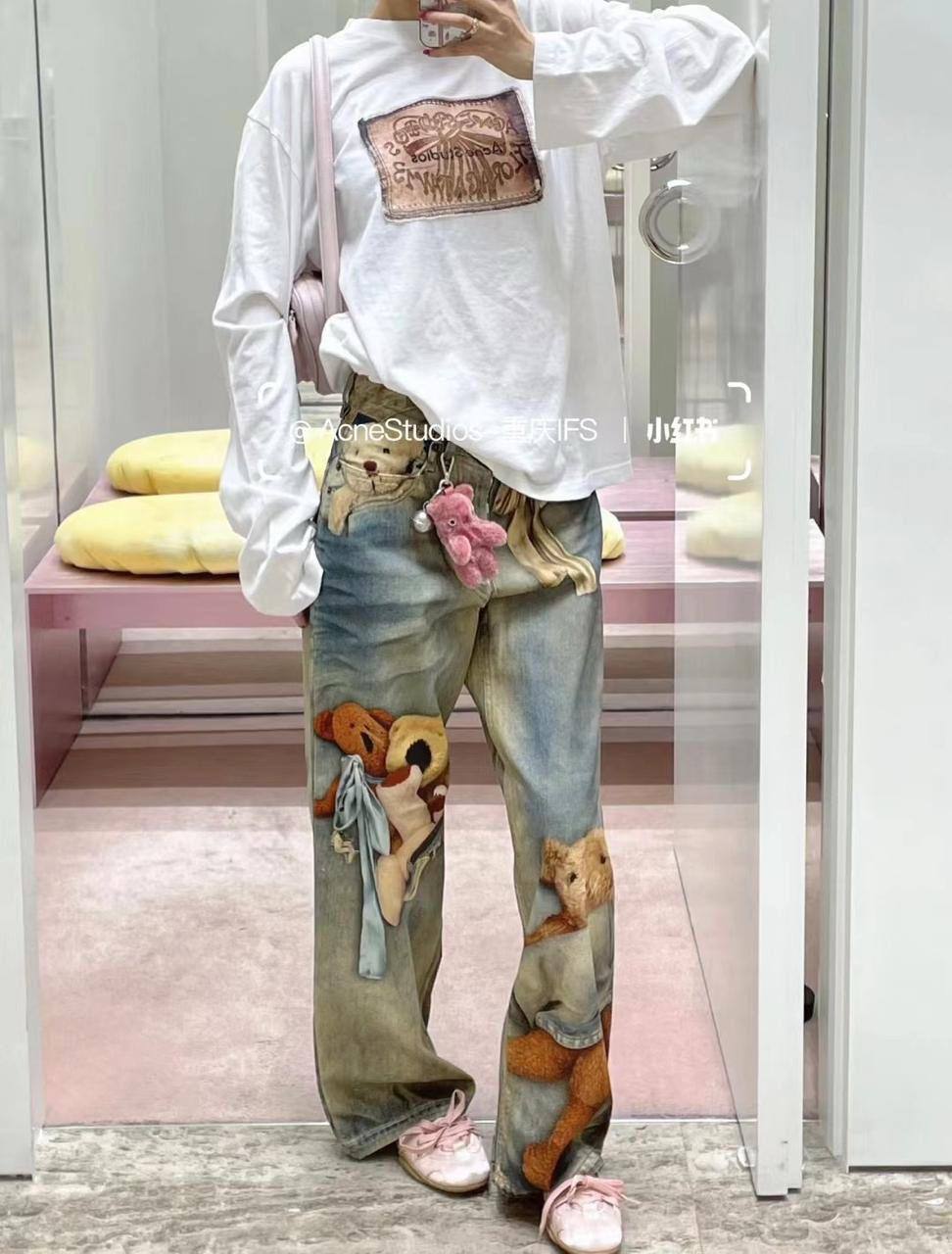 Джинсы Acne BMS-153168 – это стильная модель, выделяющаяся своим оригинальным дизайном с принтами плюшевых мишек. Широкий крой и уникальный дизайн делают их отличным выбором для создания запоминающегося образа.
