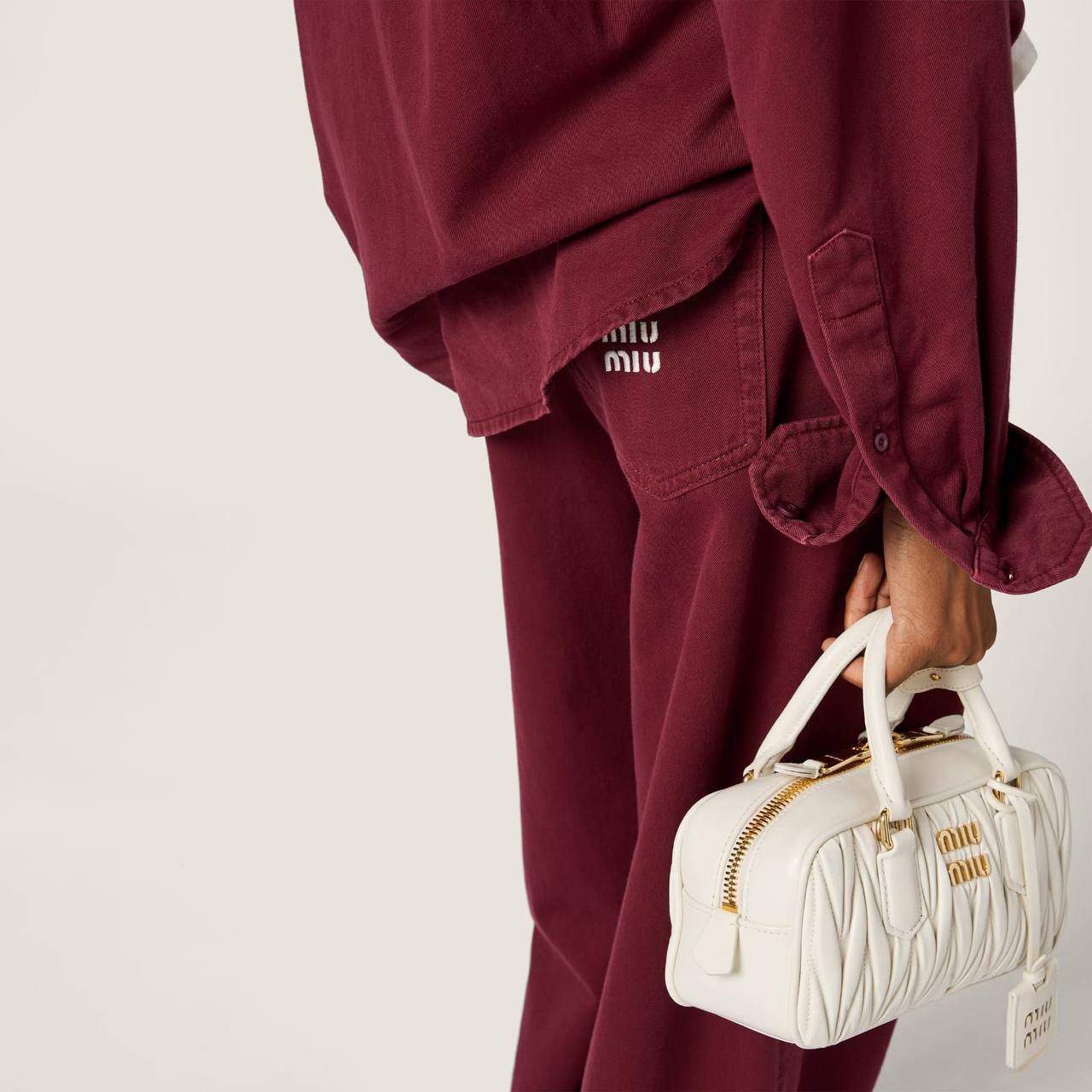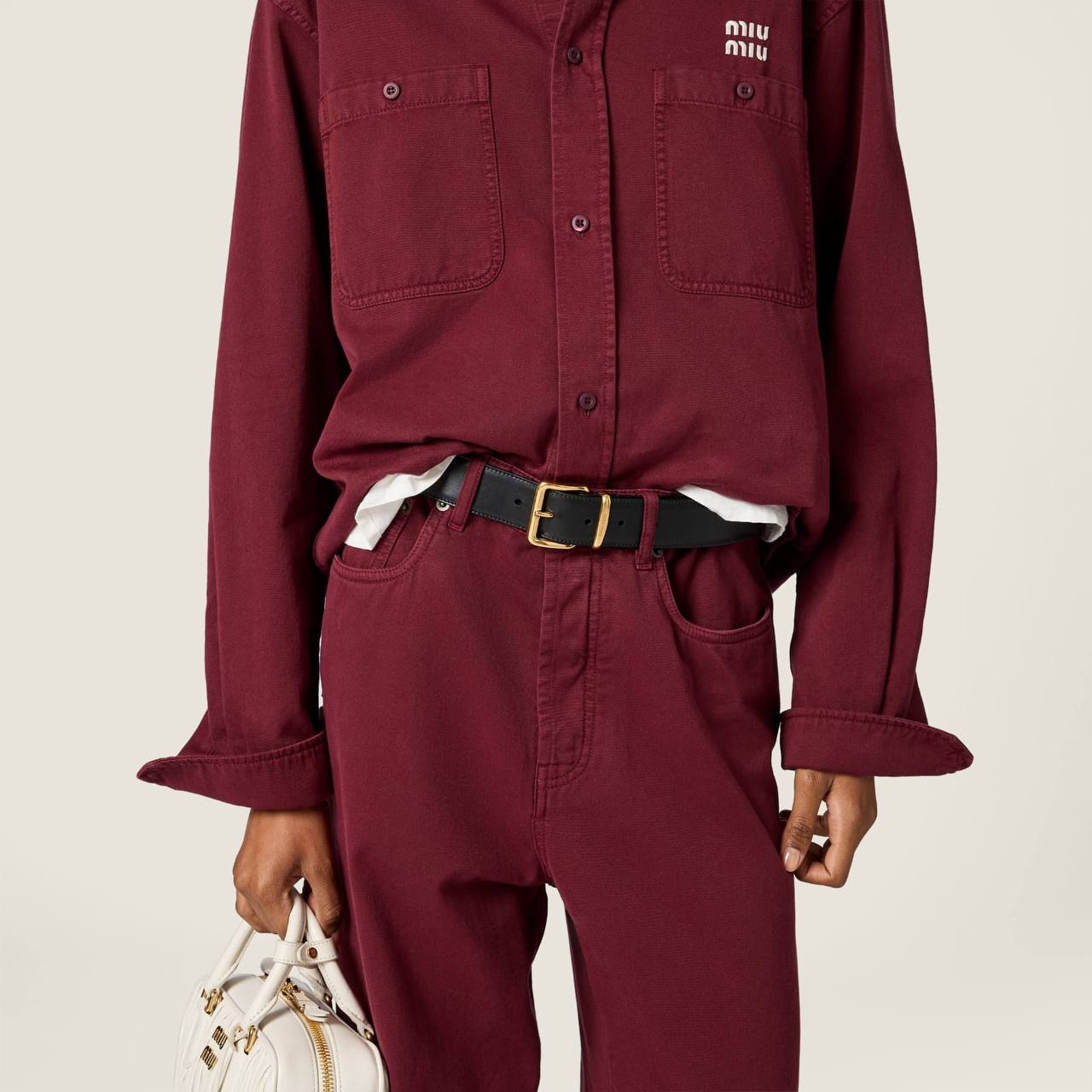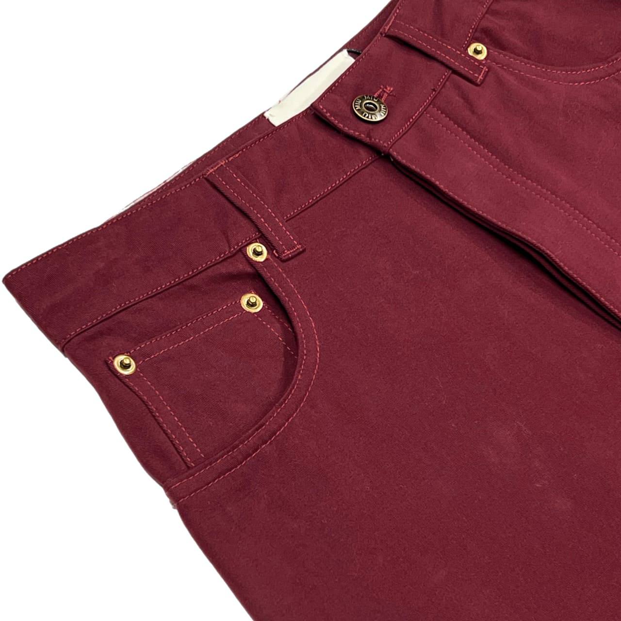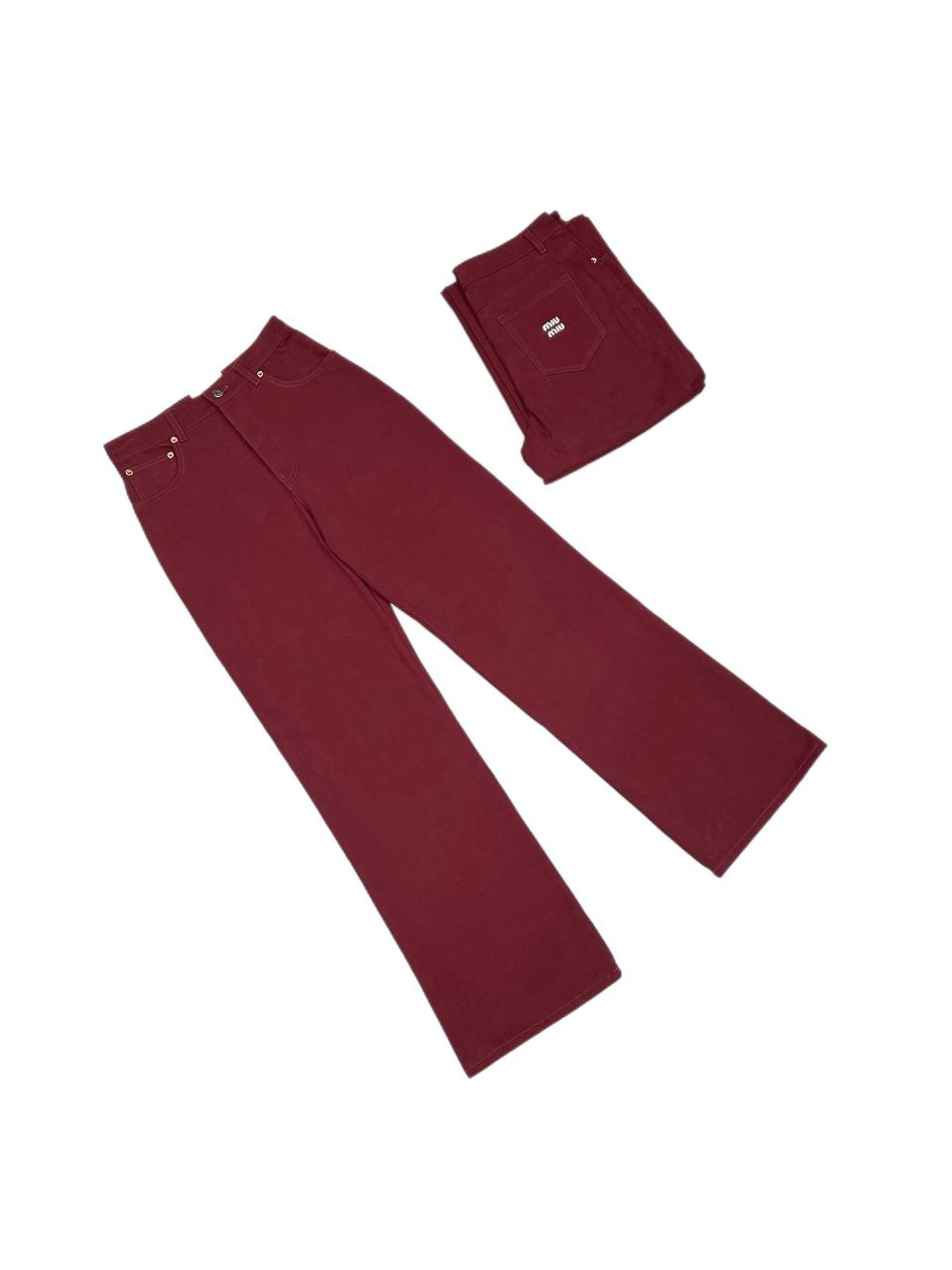 Джинсы Miu Miu BMS-156425 — стильный и современный выбор для создания модных образов. Эти джинсы отличаются широким кроем и глубоким винным цветом, что делает их выразительным элементом гардероба.