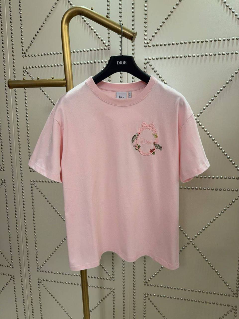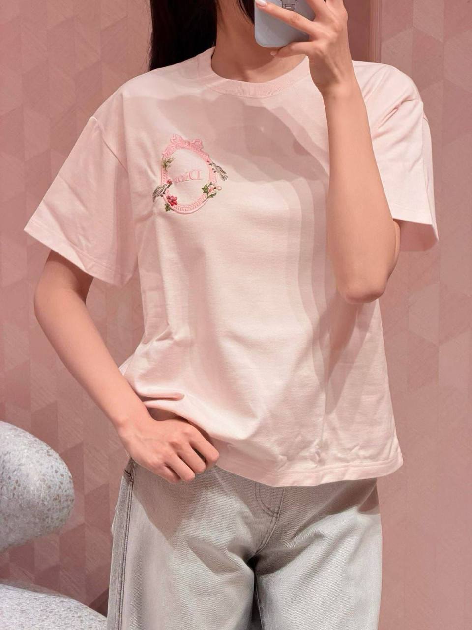 Эта стильная футболка от Christian Dior воплощает собой сочетание нежности и элегантности. Изысканный дизайн и пастельный оттенок делают её прекрасным выбором для создания женственного образа.