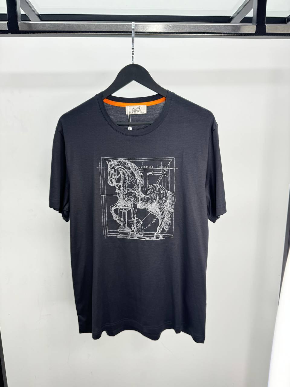 Футболка Hermes BMS-156126 в темно-сером цвете – это стильный и современный выбор для повседневного гардероба. Её украшает оригинальный принт с изображением лошади, выполненный в графическом стиле.