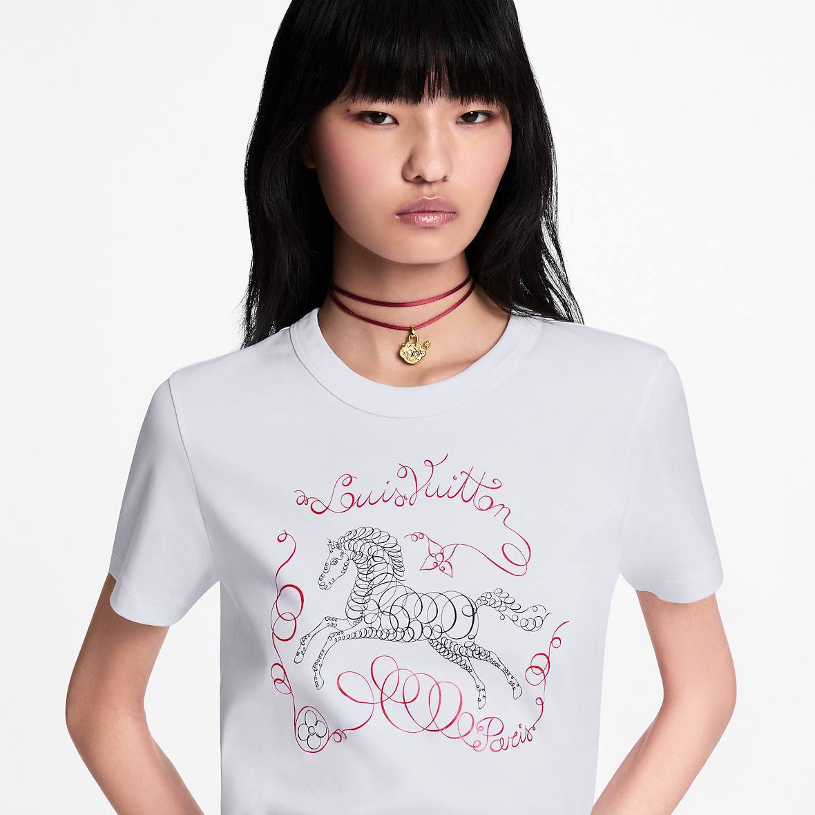 Стильная футболка Louis Vuitton BMS-155388 с оригинальным дизайном станет ярким акцентом в вашем гардеробе. Модель отличается лаконичным кроем и принтом с изображением лошади и логотипом бренда.
