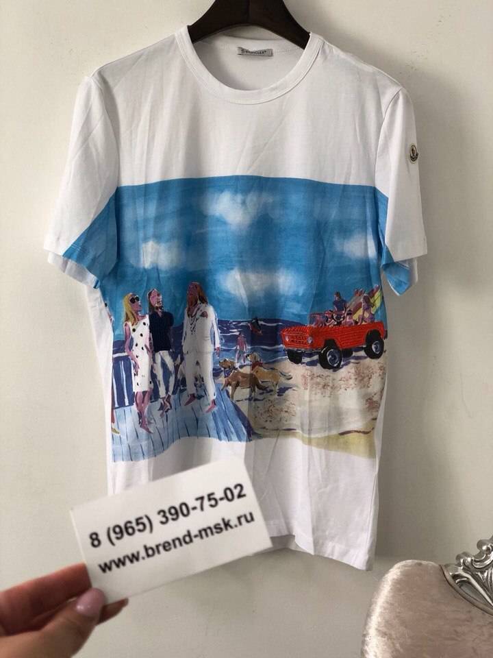 Футболка Moncler ODM-1315 выполнена в современном стиле и подходит для повседневного ношения. Белый цвет изделия дополнен ярким принтом, изображающим пляжную сцену, что придает футболке оригинальность и летнее настроение.