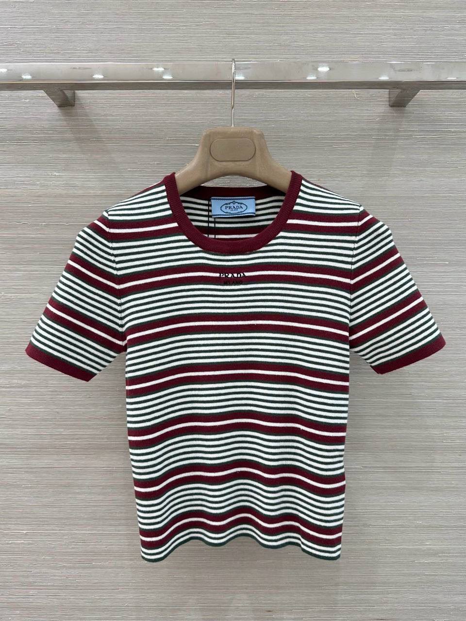 Футболка Prada BMS-156525 – это стильный и узнаваемый предмет гардероба от известного бренда. Трикотажная модель с короткими рукавами выполнена в полоску, что делает ее ярким акцентом в образе.