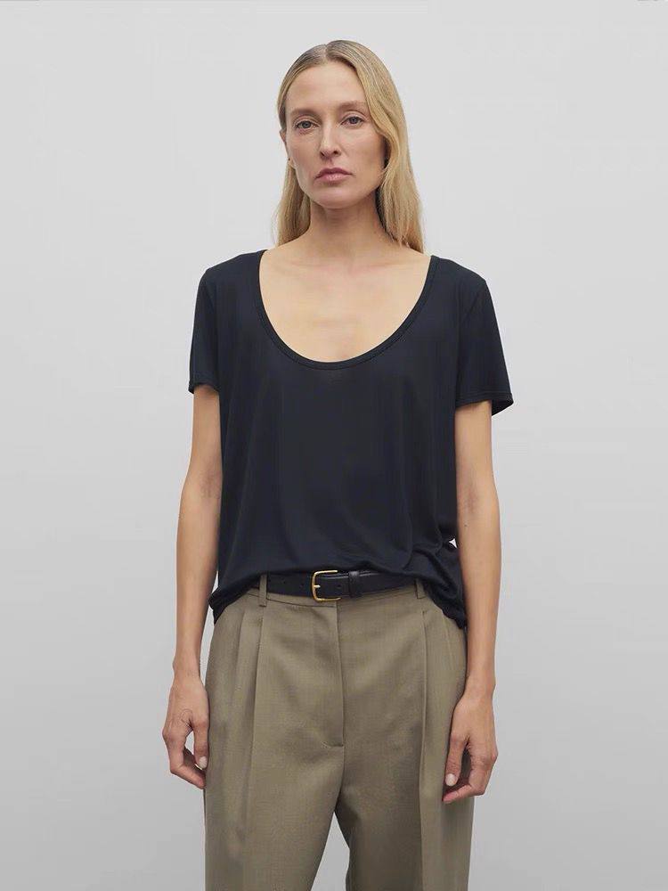 Футболка The Row BMS-156358 выполнена в лаконичном стиле, что позволяет легко комбинировать её с различными элементами гардероба. Этот предмет одежды идеально подходит для создания как повседневных, так и более элегантных образов.