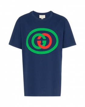 Футболка женская Gucci BMS-39699 выполнена в темно-синем цвете и декорирована ярким принтом с логотипом бренда, сочетающим зеленый и красный оттенки. Эта модель является отличным выбором для создания стильных повседневных образов, предлагая комфорт и узнаваемый стиль.