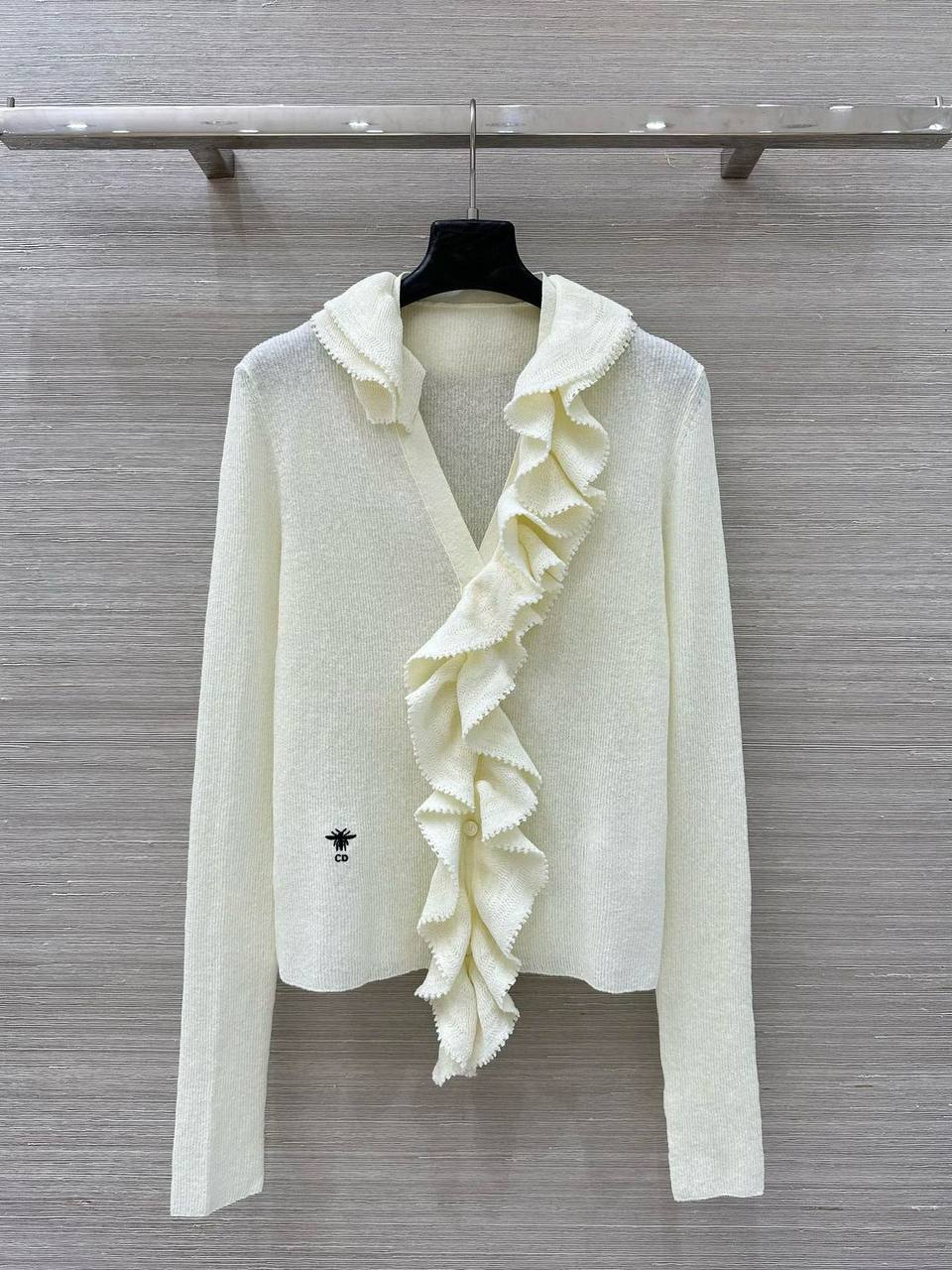 Кардиган Christian Dior BMS-151678 – это элегантный и утонченный предмет гардероба, сочетающий в себе классический стиль и современные тенденции. Его отличает изысканная отделка в виде оборок, что добавляет образу женственности и романтичности.