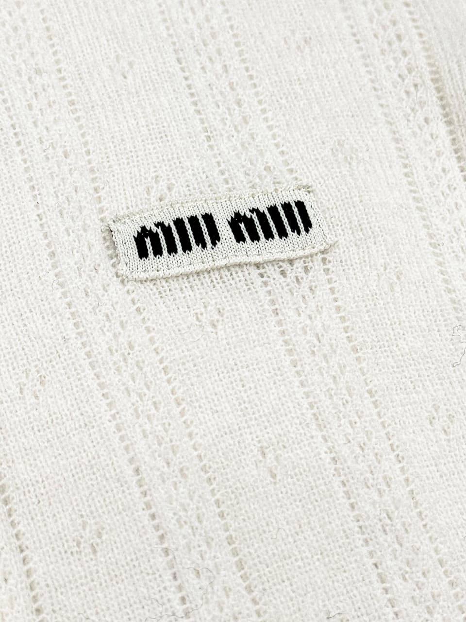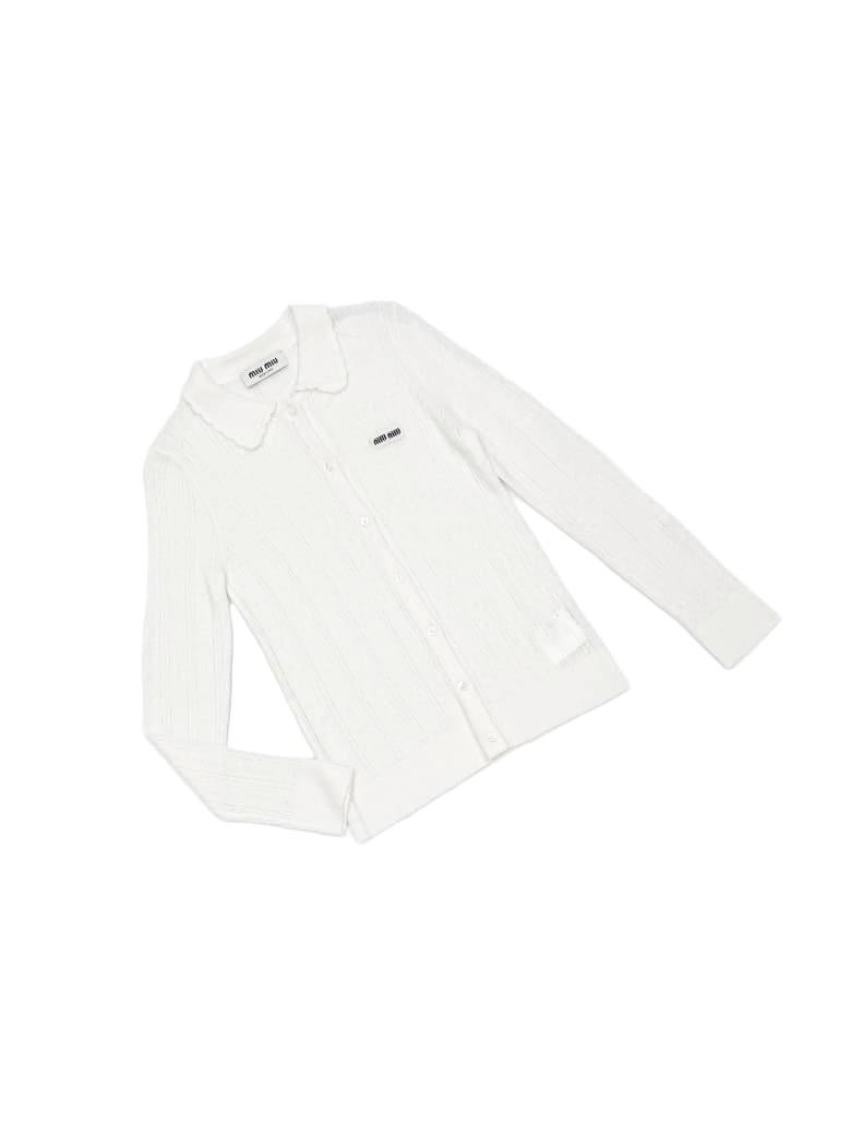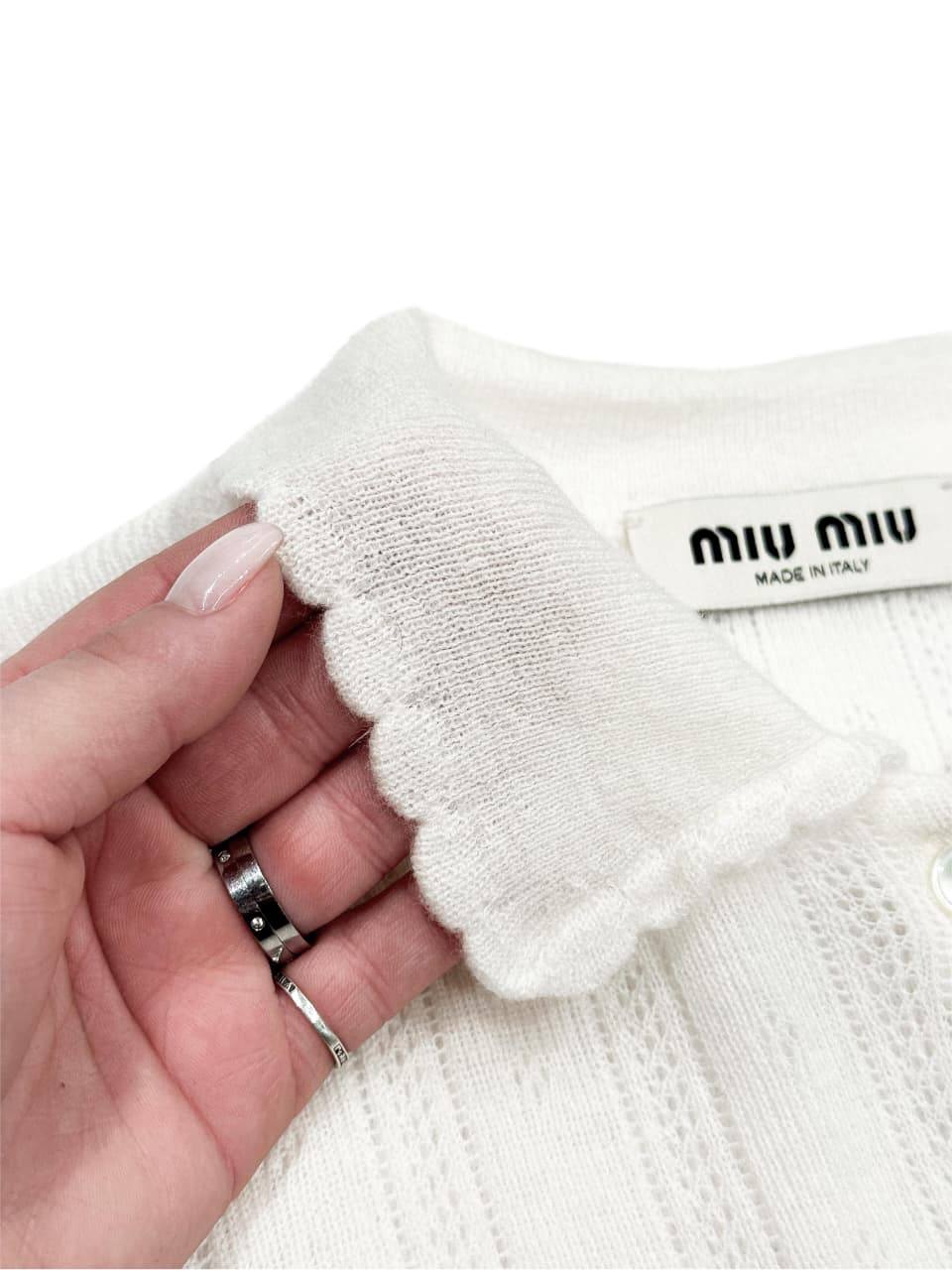 Элегантный кардиган от Miu Miu в классическом стиле, который добавит изысканности в любой образ. Модель выполнена в нежном белом цвете и имеет утонченный дизайн.