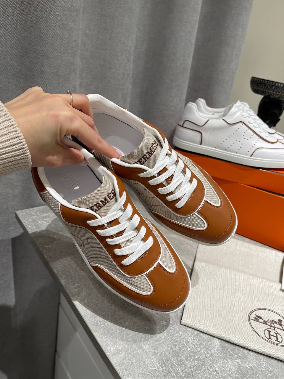 Элегантные женские кеды от Hermes добавят изысканности в повседневный образ. Модель выполнена в коричнево-бежевой гамме с акцентом на комфорт и стиль.