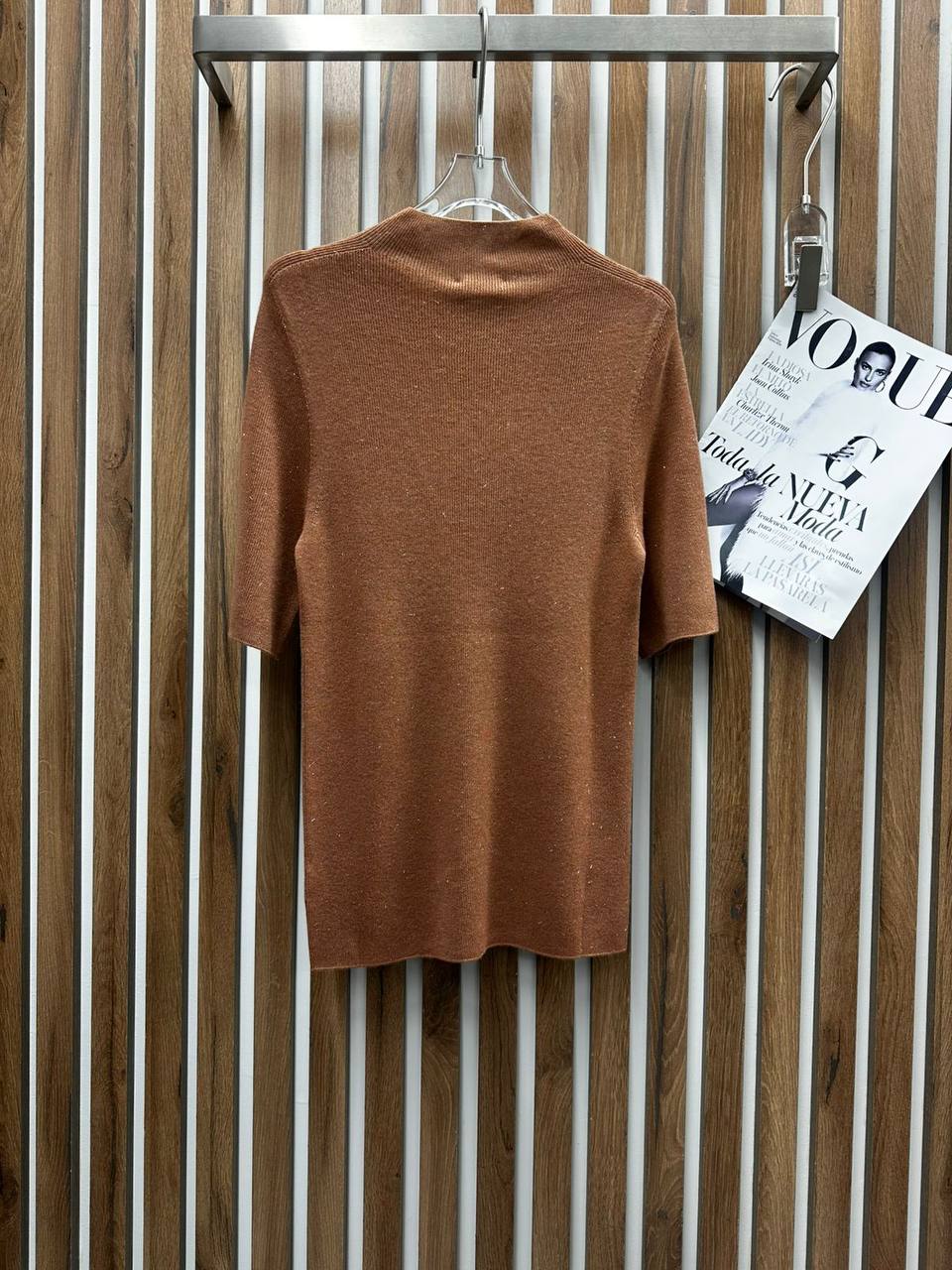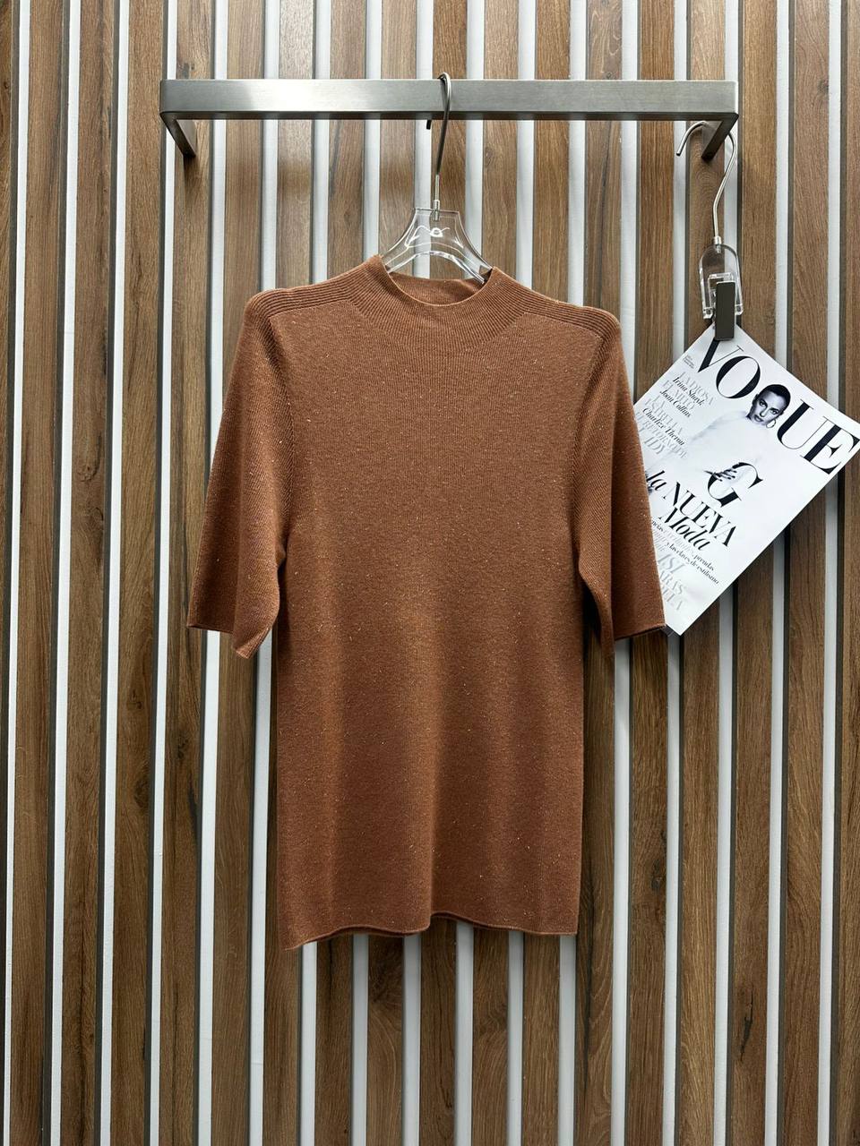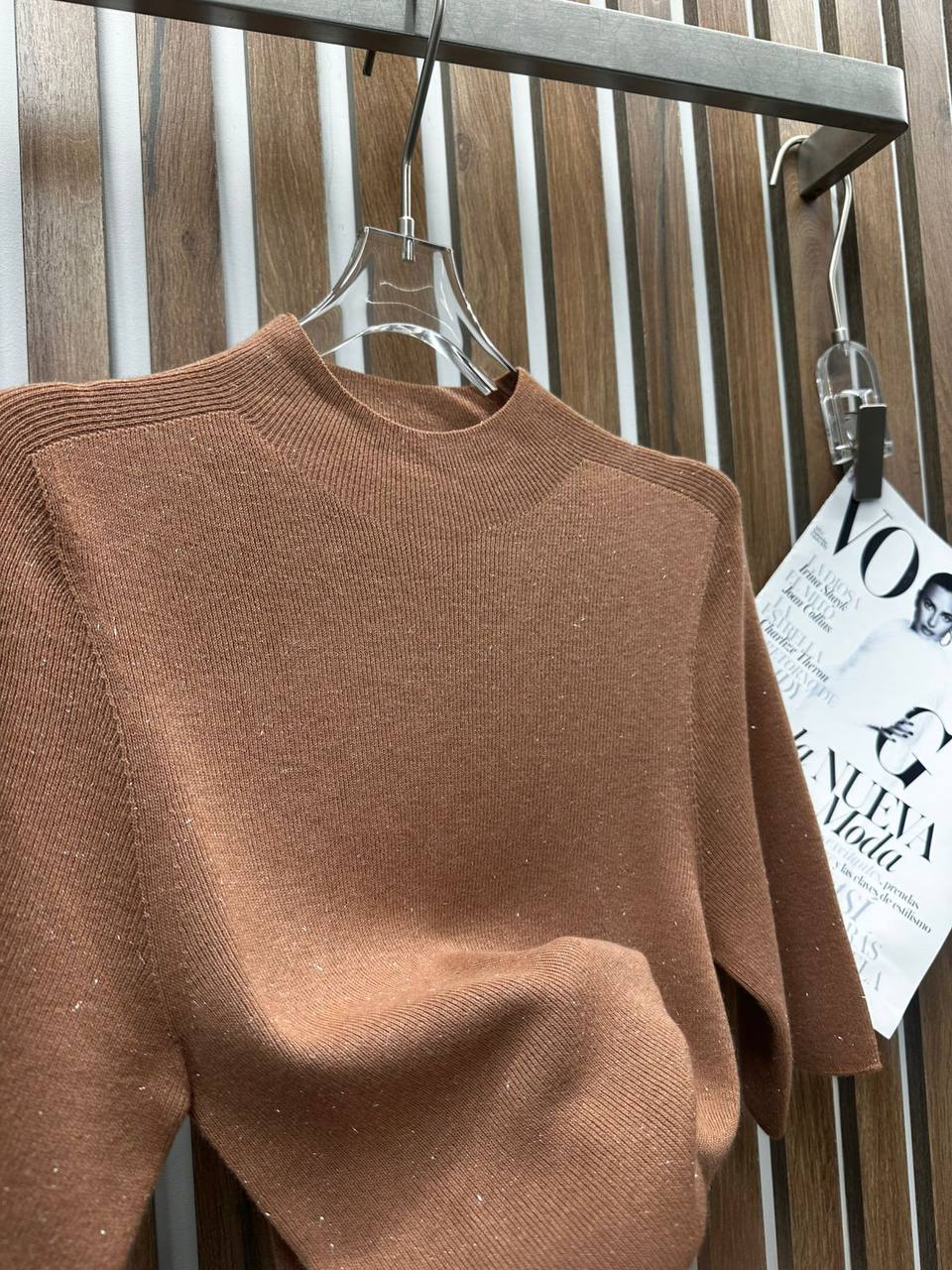 Стильная и универсальная кофта идеально дополнит ваш гардероб. Модель с короткими рукавами и высоким воротником создаст элегантный и женственный образ. Подходит для различных случаев и легко комбинируется с другой одеждой.