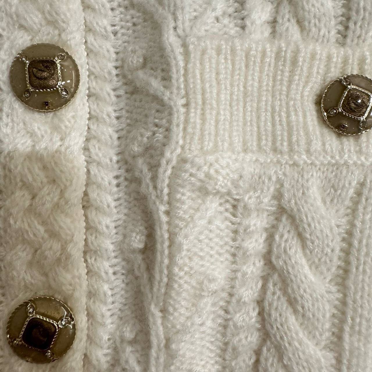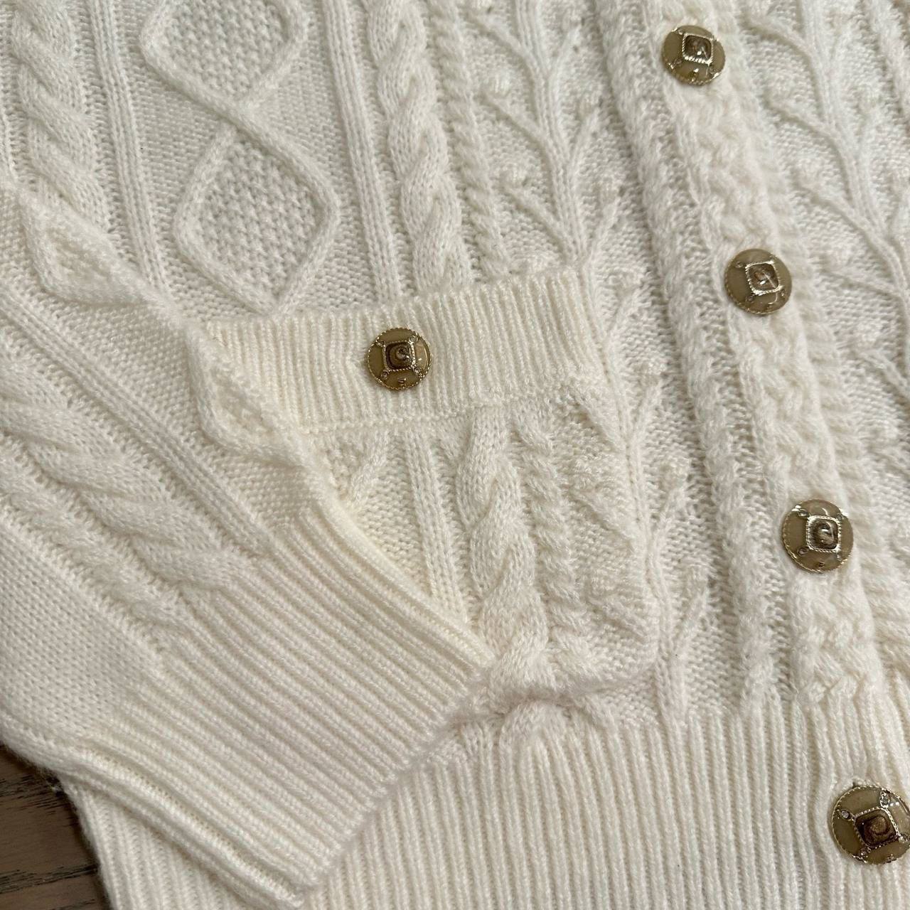 Кофта Chanel BMS-151744 — элегантный и женственный предмет гардероба. Классический кардиган с круглым вырезом и узором "косы" станет прекрасным дополнением к любому образу.