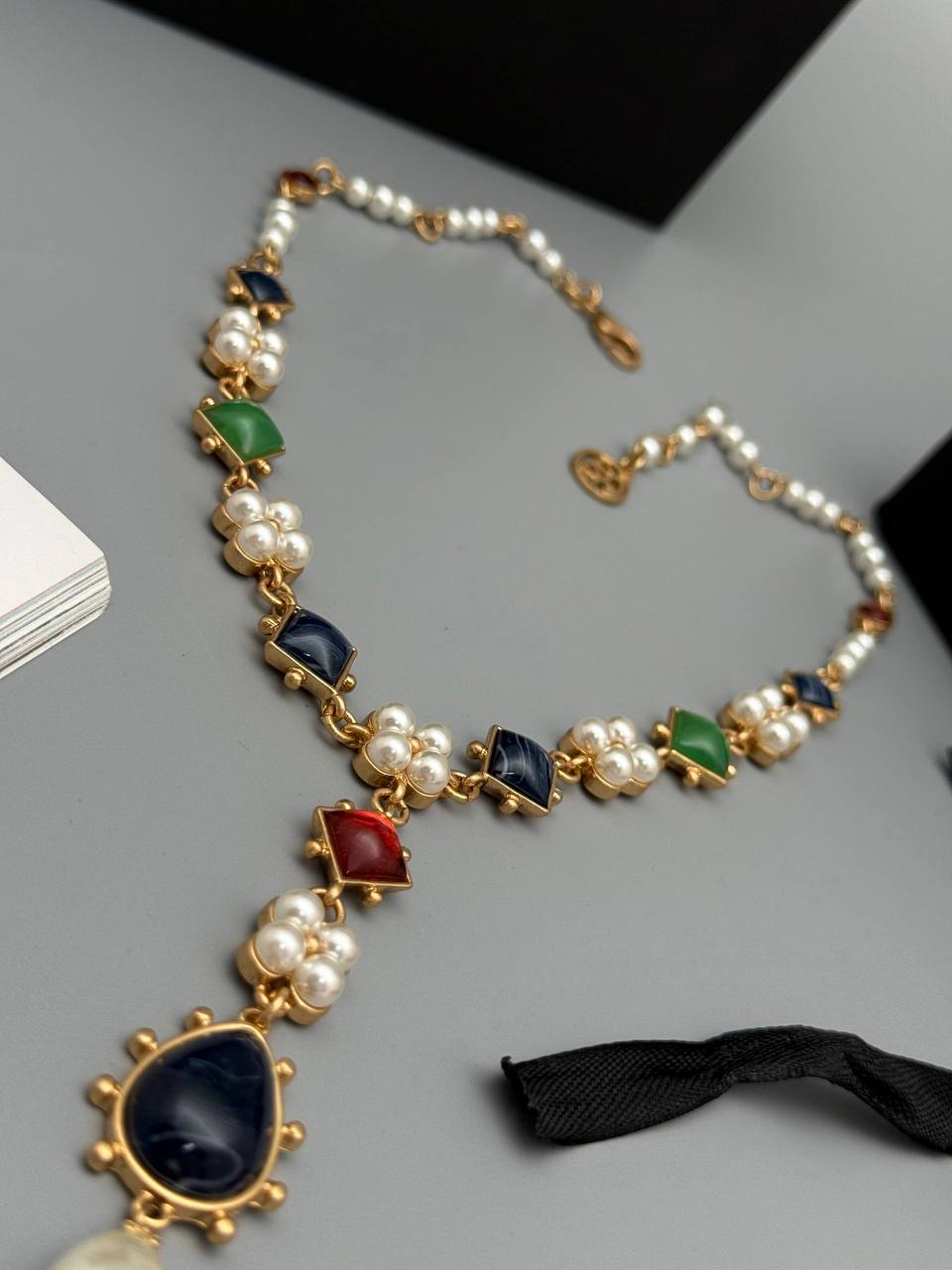 - Яркий акцент Разноцветные вставки и жемчуг привлекают внимание и добавляют образу неповторимость.