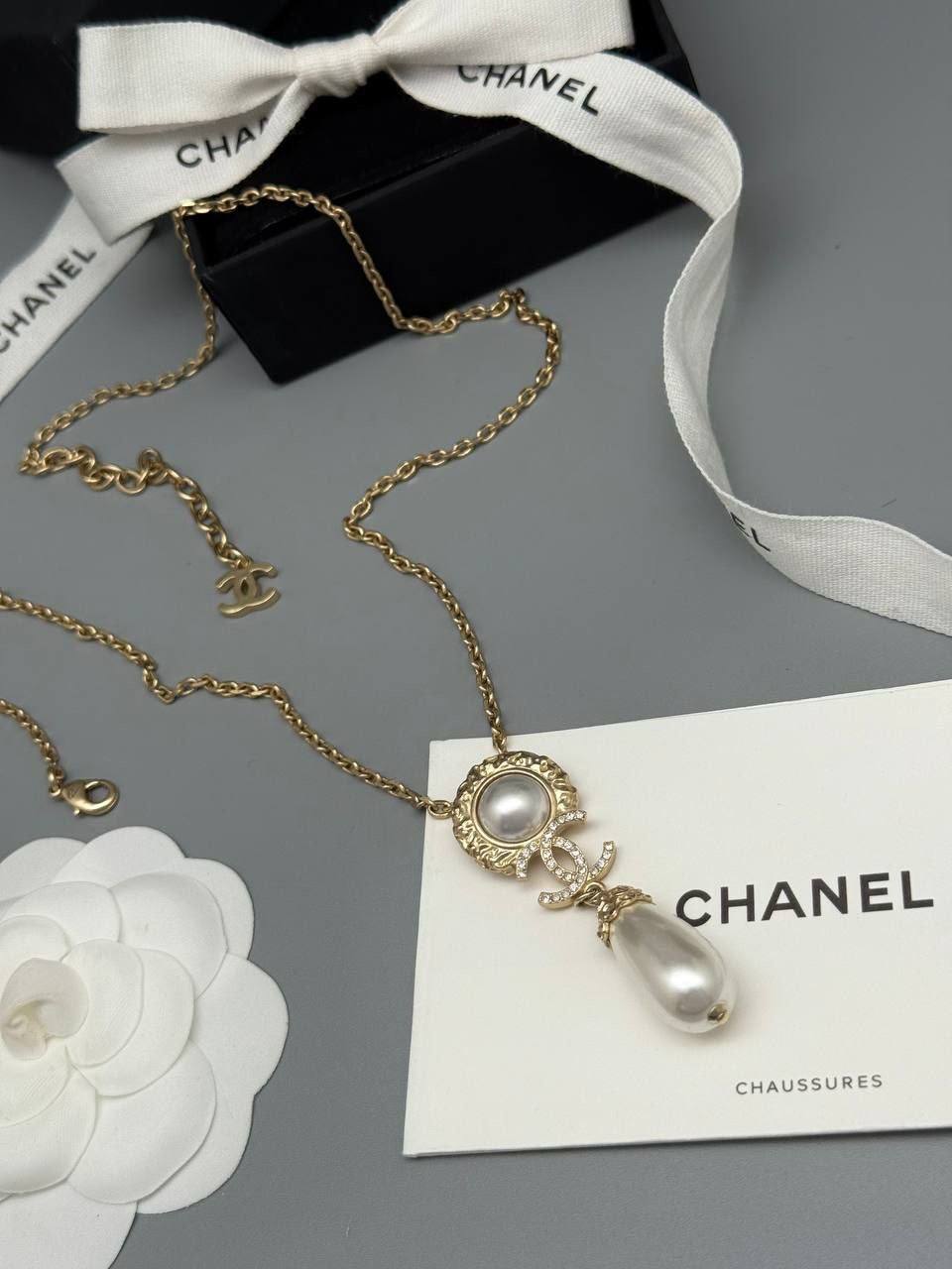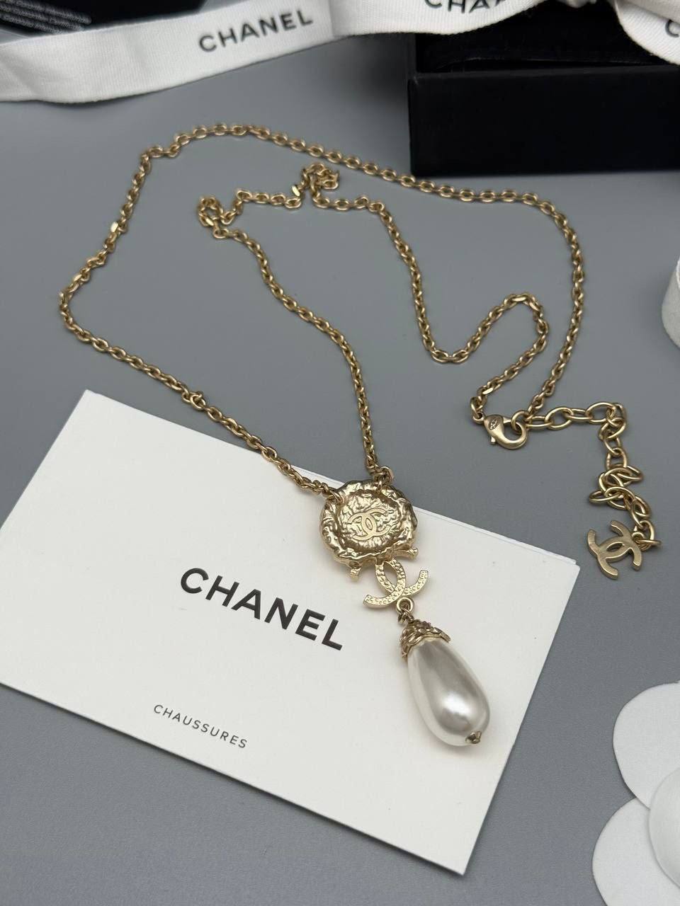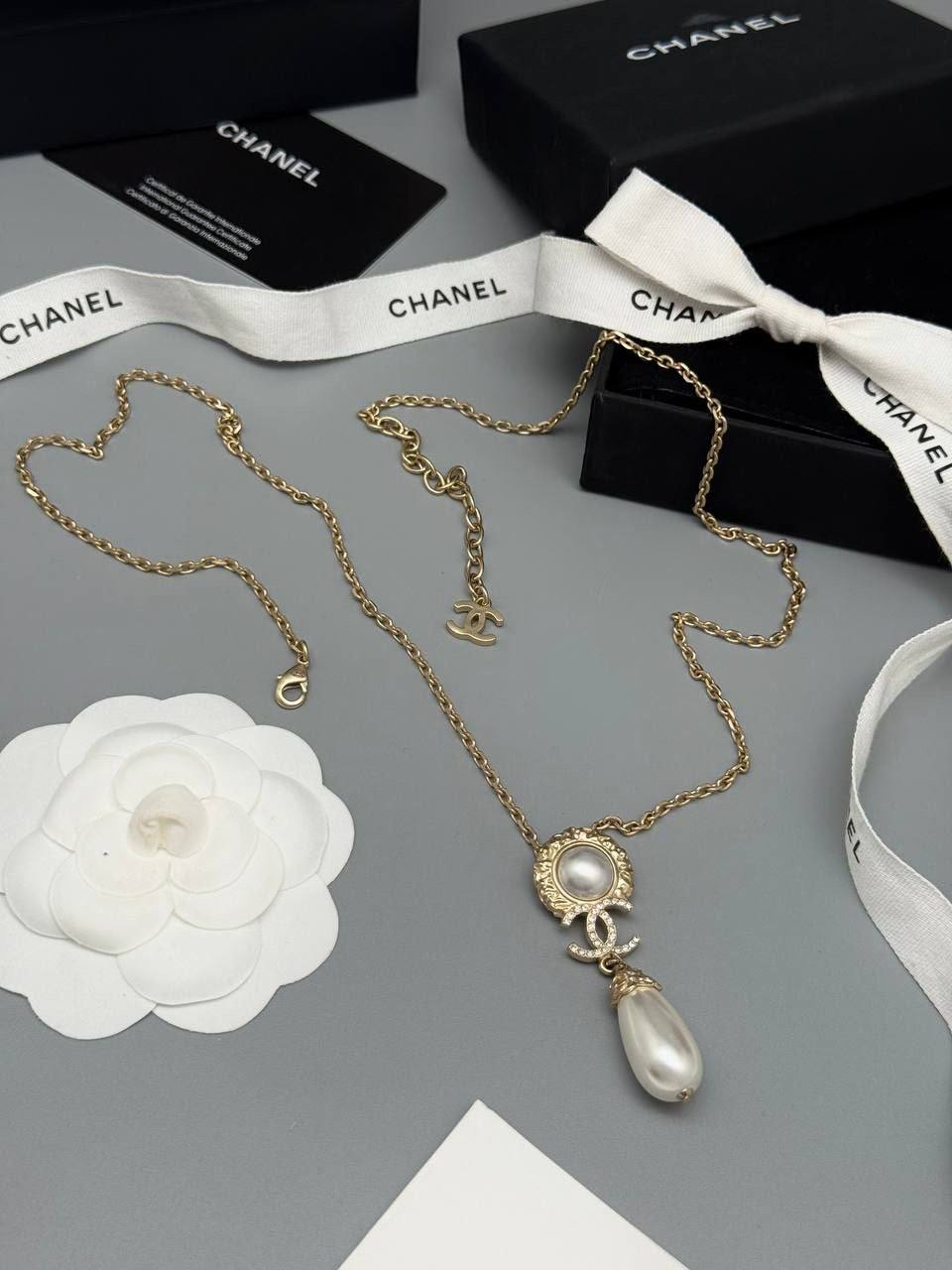 Колье Chanel BMS-154103 – это изысканное украшение, которое добавит элегантности любому образу. Золотистая цепочка и изящный кулон с имитацией жемчуга делают это колье идеальным выбором для особых случаев.