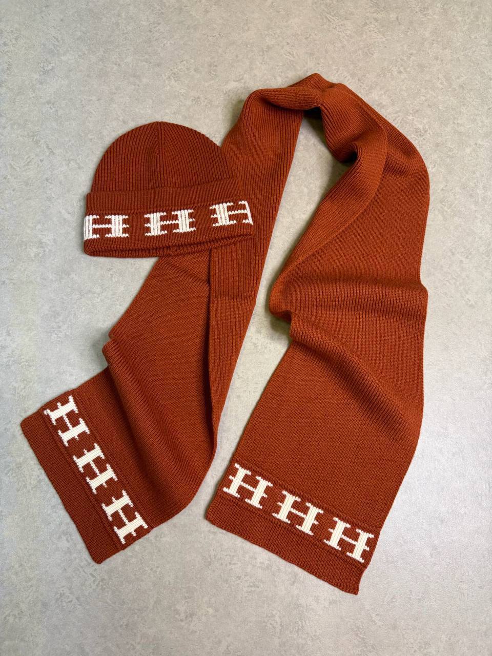 Комплект Hermes BMS-152144 включает в себя стильную шапку и шарф, выполненные в едином дизайне. Это отличный выбор для создания модного и теплого образа в холодное время года.
