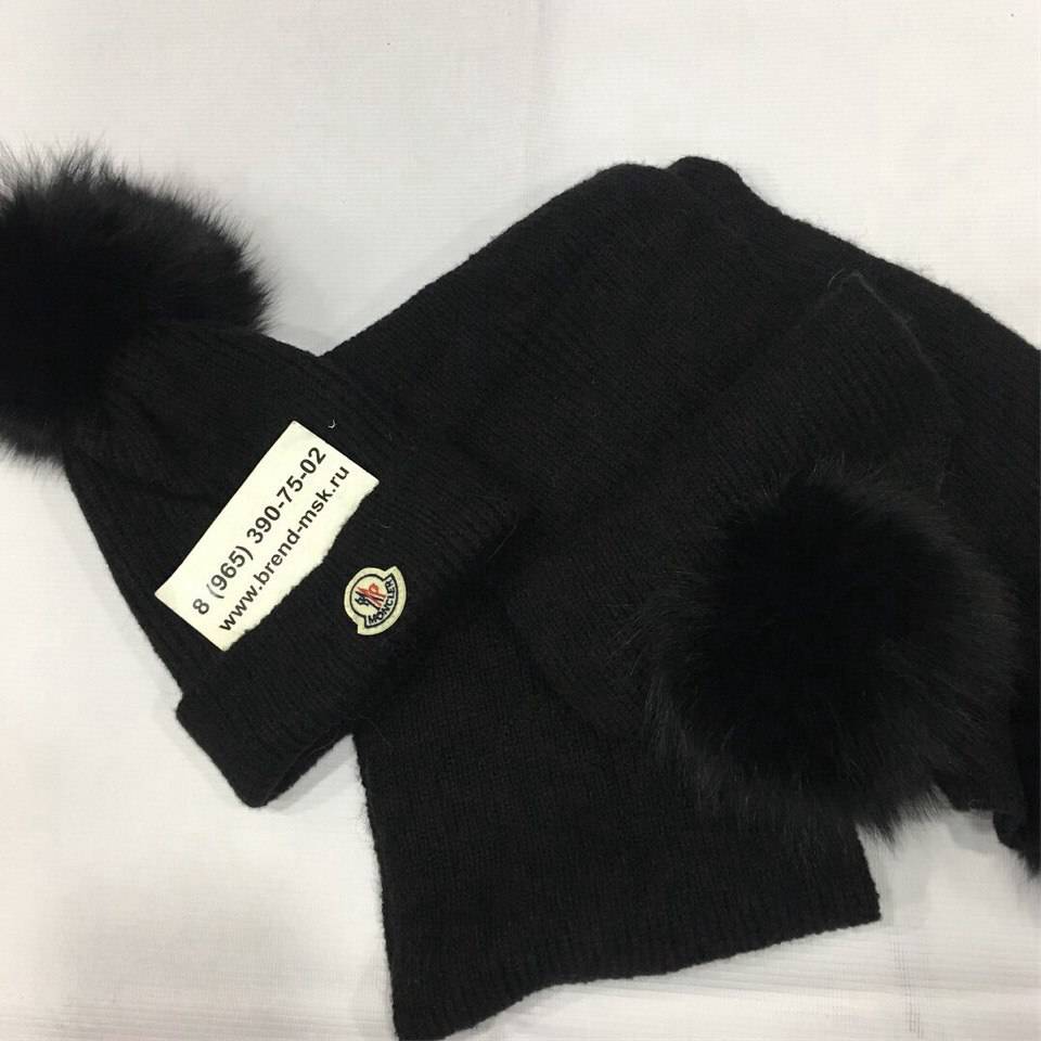 Комплект MONCLER das-016 — это элегантный набор, состоящий из вязаной шапки и шарфа, выполненных в классическом черном цвете. Декорированный натуральным мехом, этот комплект прекрасно подойдет для создания стильного зимнего образа.