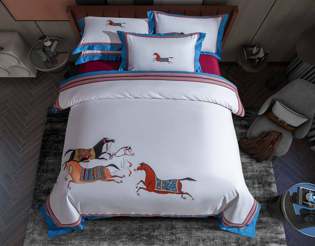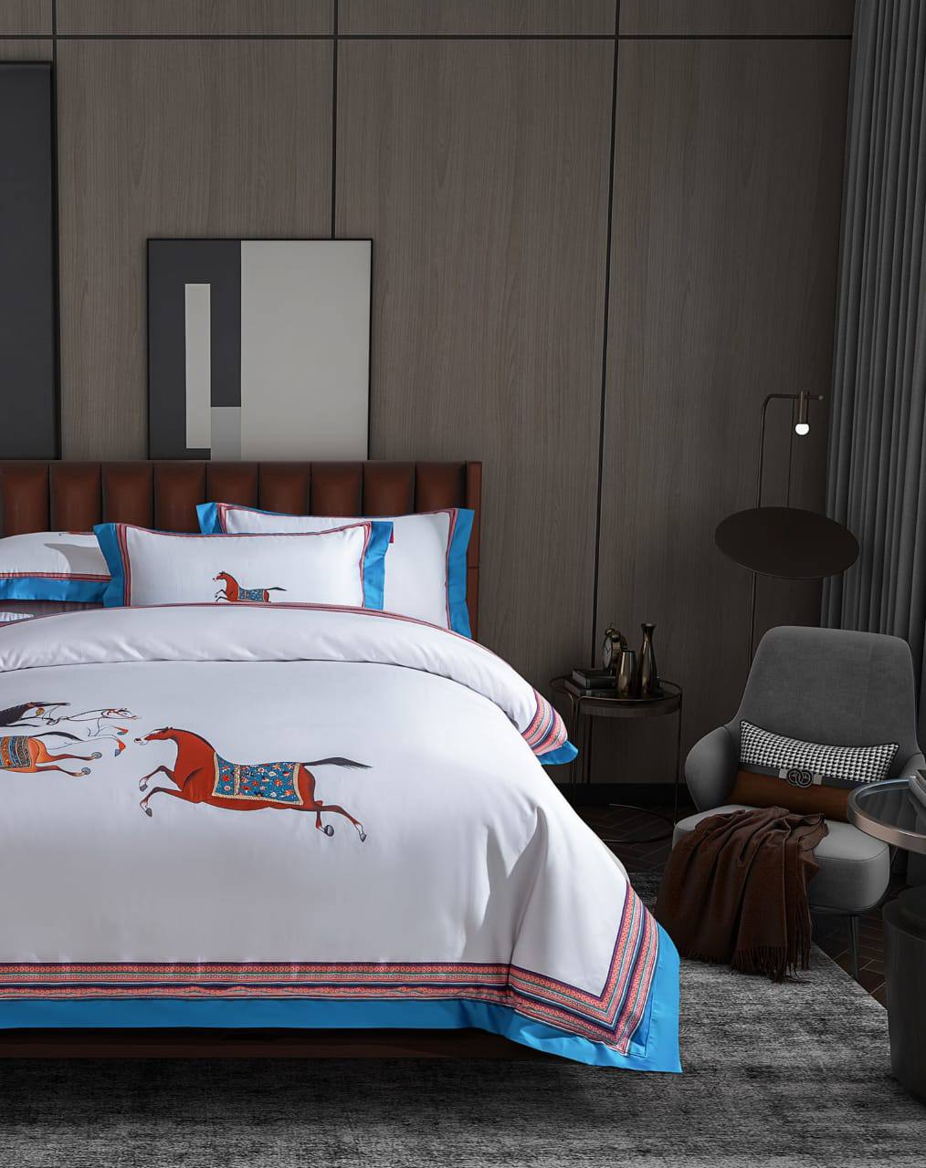 Комплект постельного белья Hermes BMS-155621 – это элегантное дополнение к интерьеру спальни. Он отличается изысканным дизайном с изображением лошадей и яркой отделкой. Прекрасно подойдет для создания уютной и стильной атмосферы.