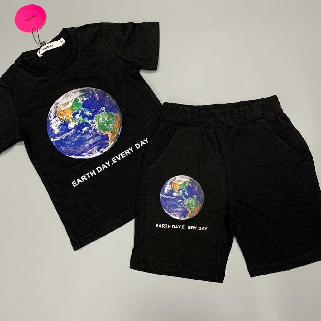Костюм Pangaia BMS-70934 – это стильный и комфортный комплект, состоящий из черной футболки и шорт, украшенный принтом с изображением Земли и надписью "EARTH DAY. EVERY DAY". Этот детский костюм идеально подходит для повседневной носки, прогулок и активного отдыха, обеспечивая свободу движений и отличное настроение.