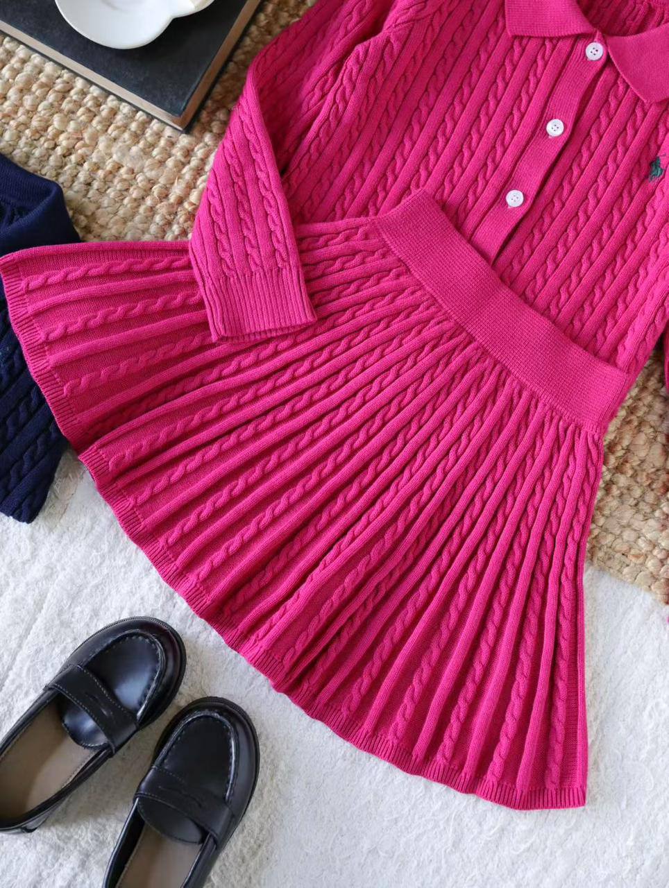 Костюм Ralph Lauren BMS-152033 — это стильный и элегантный комплект для девочек. Он состоит из вязаного верха с воротником-поло и юбки с плиссировкой, выполненных в едином дизайне.