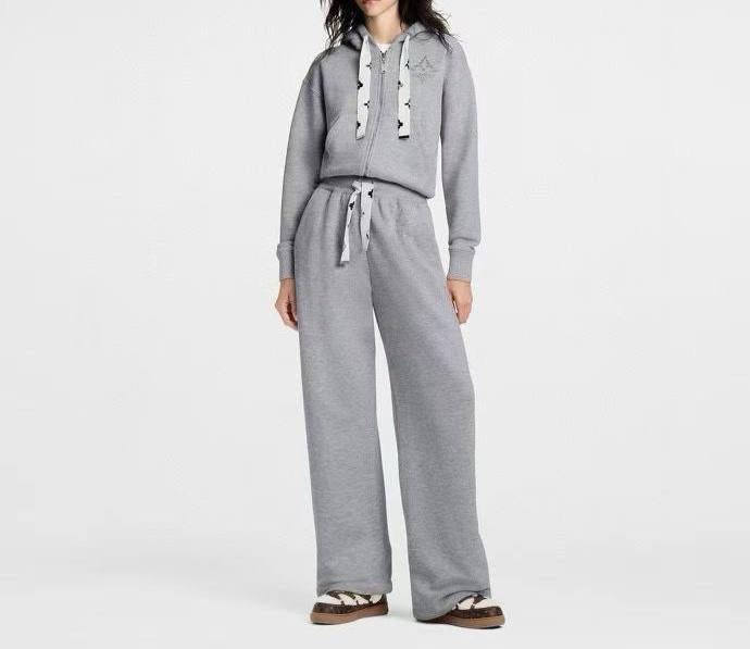 Стильный спортивный костюм от Louis Vuitton – это отличный выбор для создания модного и комфортного образа. Костюм состоит из худи на молнии и широких брюк.