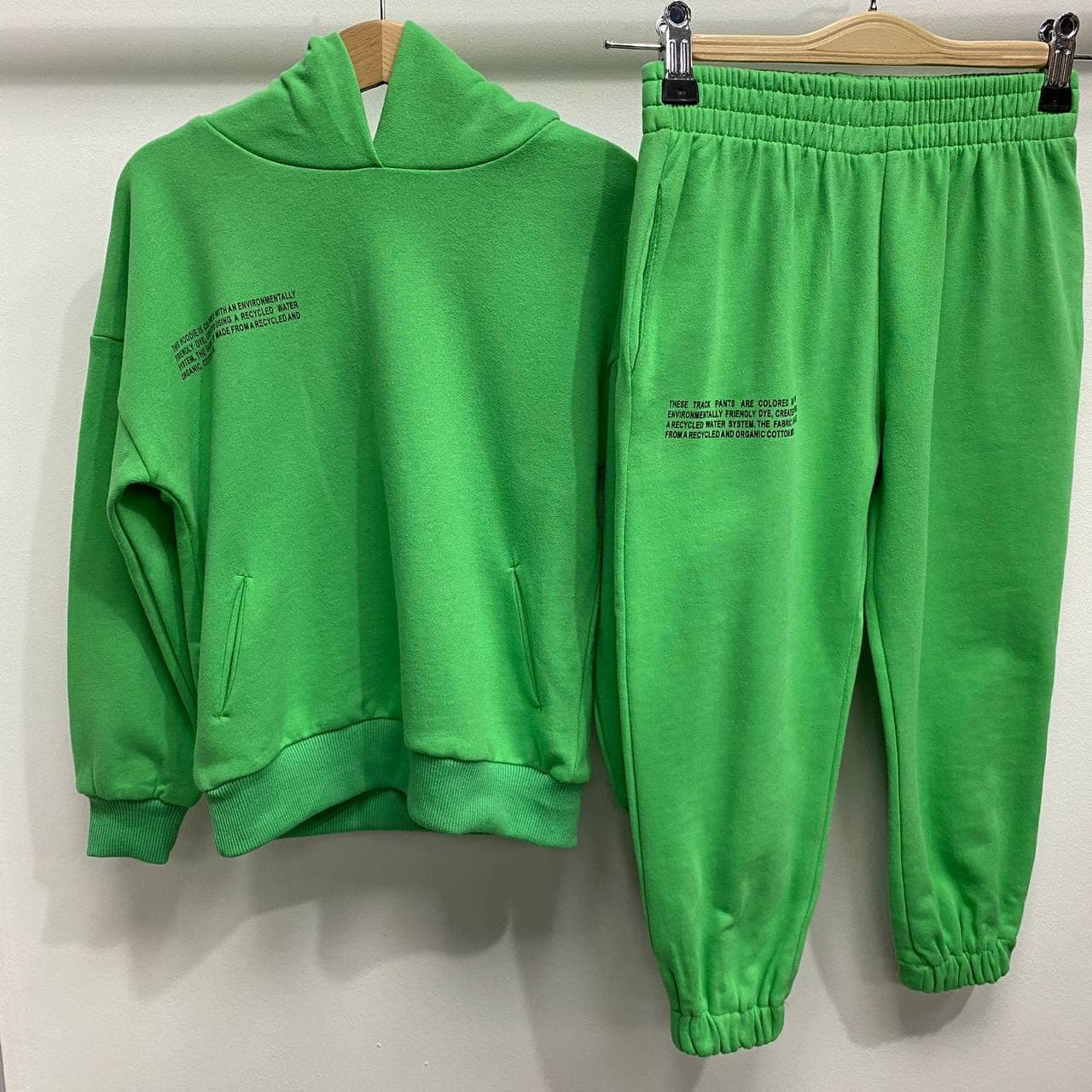 Костюм спортивный Pangaia BMS-82001 — это стильный и удобный комплект, состоящий из худи с капюшоном и спортивных штанов. Яркий зеленый цвет придает костюму современный вид, делая его идеальным выбором для повседневной носки.