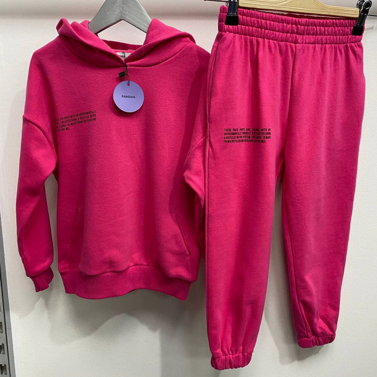 Костюм спортивный Pangaia BMS-82005 — это яркий и стильный спортивный костюм. Он выполнен в насыщенном розовом цвете, который придаст образу свежесть и выразительность. Костюм состоит из худи с капюшоном и брюк, что делает его идеальным для создания комфортных повседневных образов.