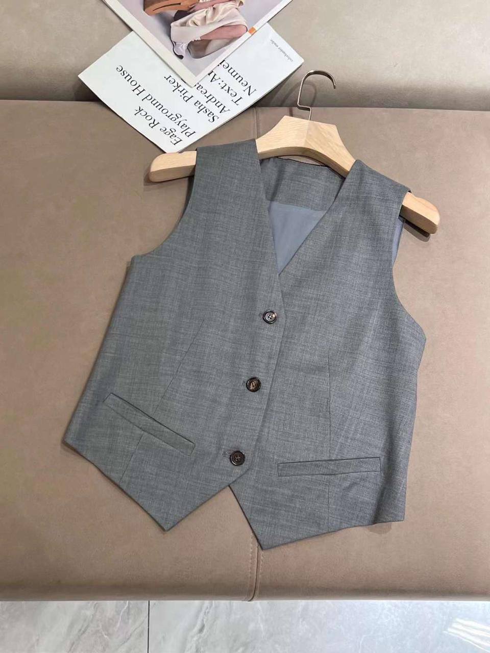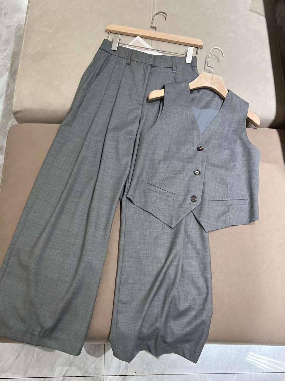 Этот стильный женский костюм от бренда Brand-MSK с артикулом BMS-156283 представляет собой элегантный и современный комплект, состоящий из жилета и брюк. Он идеально подойдет для создания делового или повседневного образа.