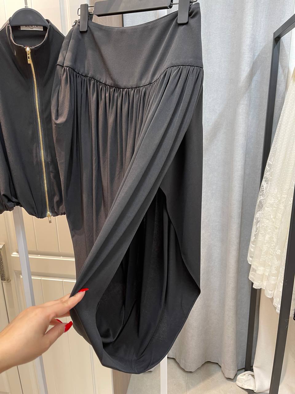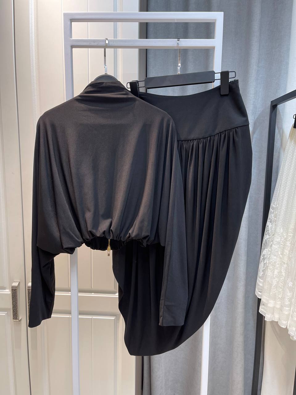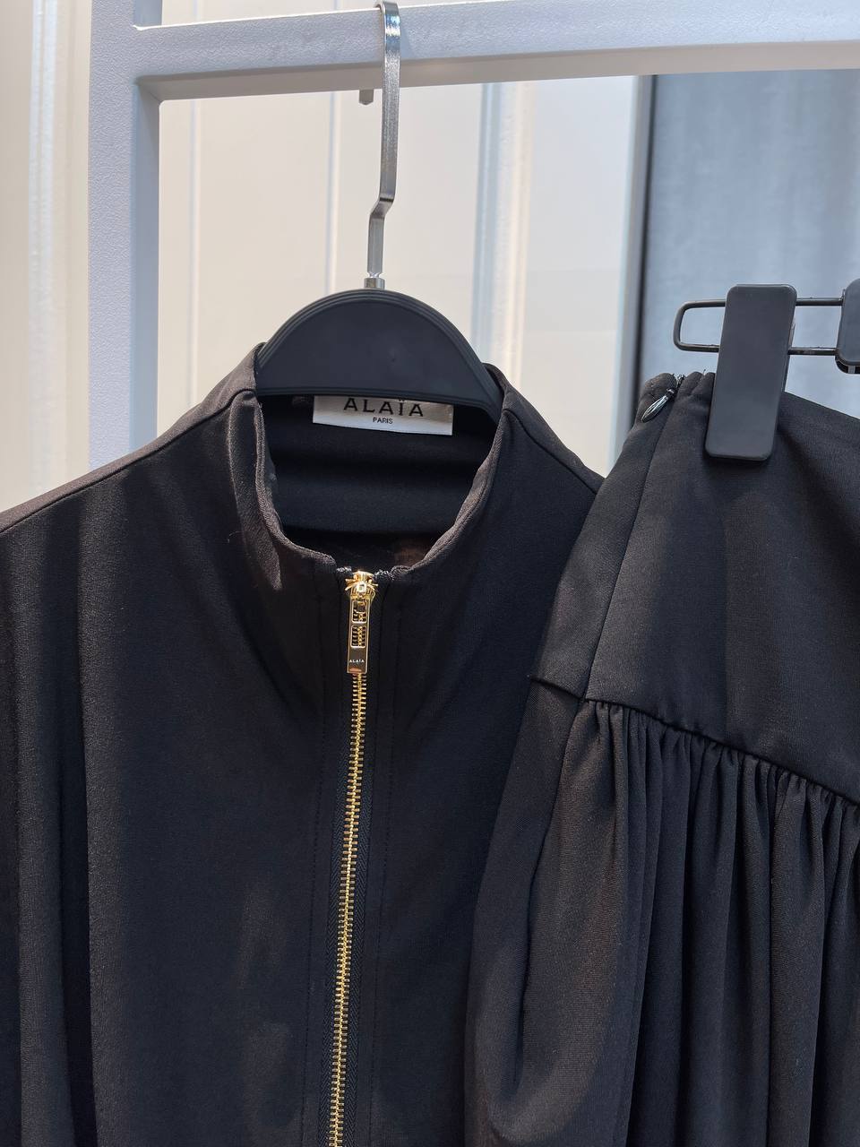 Костюм Alaia BMS-156171 — это стильный женский комплект, состоящий из куртки-бомбера на молнии и юбки асимметричного кроя. Он идеально подойдет для создания модных и элегантных образов.