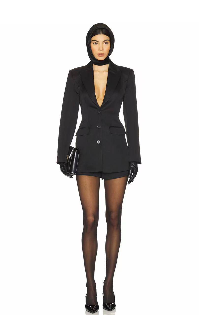 Костюм женский Yves Saint Laurent BMS-156482 – элегантный и стильный выбор для современной женщины. Комплект состоит из приталенного жакета и шорт, выполненных в классическом черном цвете.