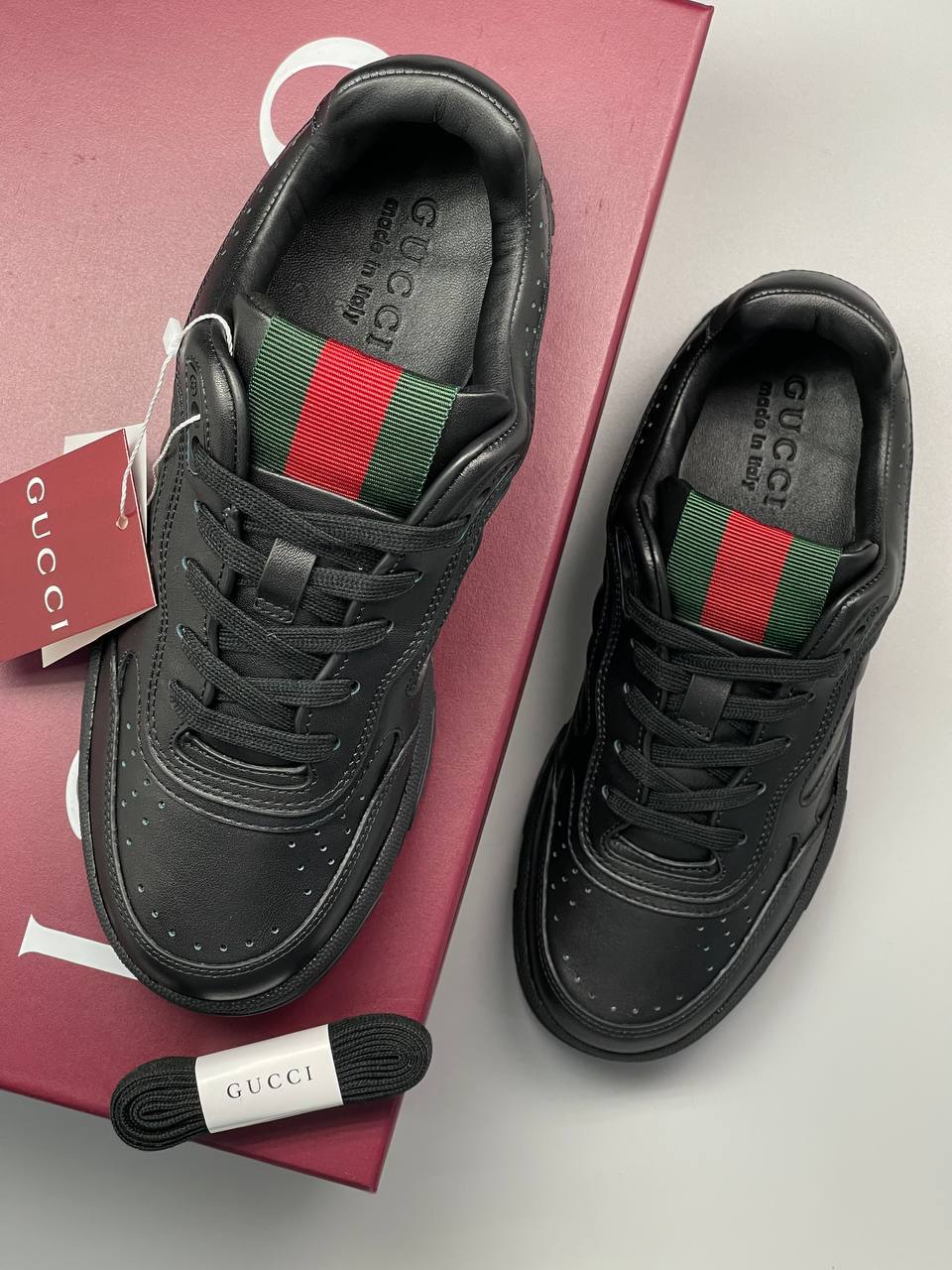Кроссовки Gucci BMS-156752 – это стильная модель, сочетающая в себе классический дизайн и современные акценты. Они выполнены в лаконичном черном цвете и украшены фирменной полоской Gucci. Идеальный выбор для создания актуальных образов.