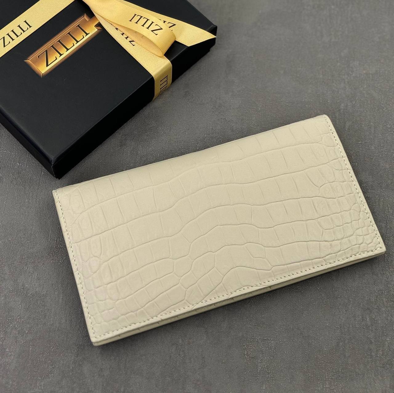 - Качество Изготовлен из натуральной кожи крокодила, что гарантирует долговечность.