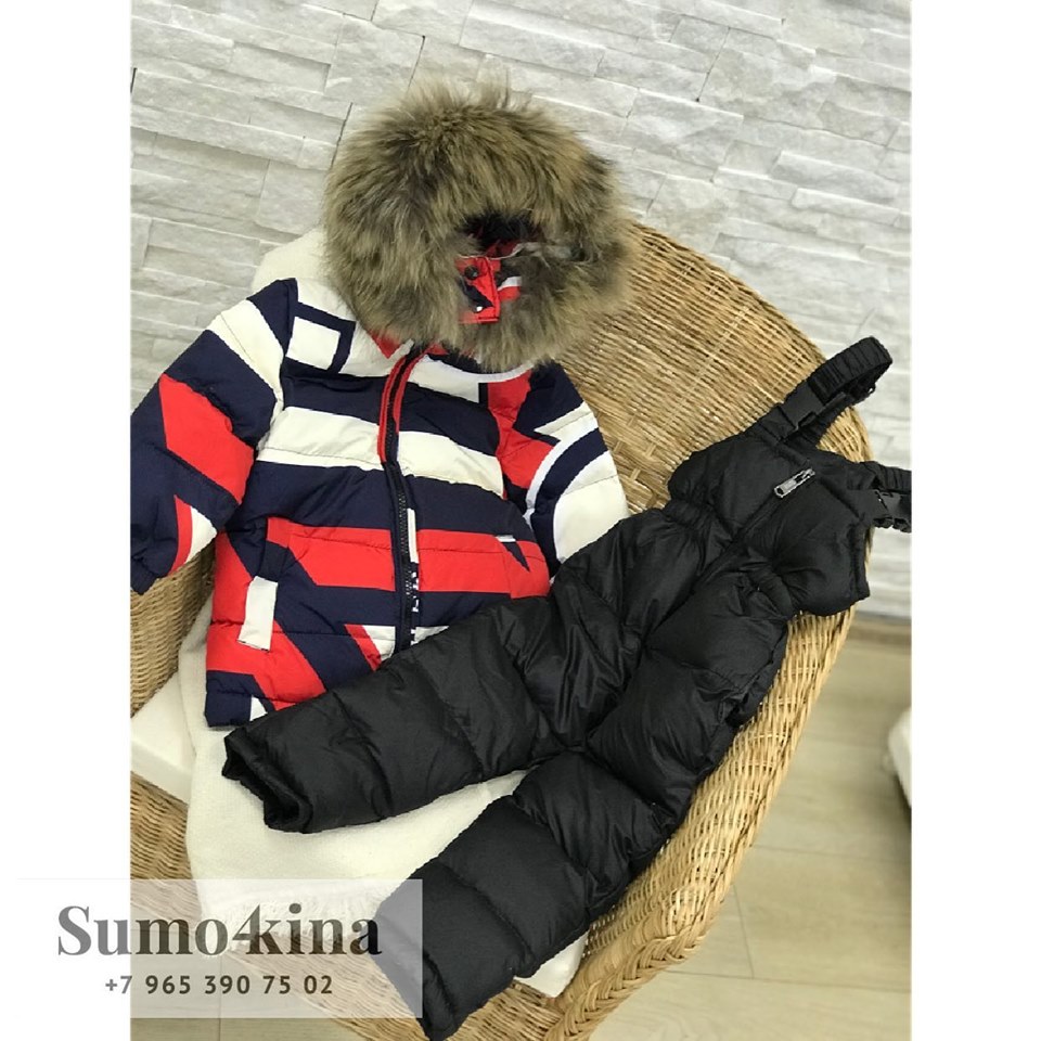 Куртка+комбинезон Moncler BMS-40874 представляет собой стильный и функциональный зимний комплект для детей. Яркая куртка с принтом в красно-сине-белую полоску и объемным меховым капюшоном прекрасно сочетается с однотонным черным комбинезоном. Этот набор идеально подойдет для активных зимних прогулок и игр, обеспечивая тепло и комфорт.
