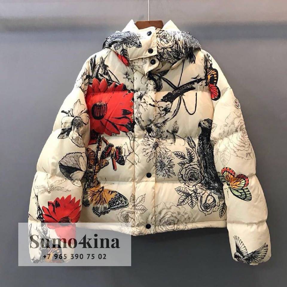 Куртка Moncler BMS-23087 — это стильная и практичная модель, отличающаяся оригинальным принтом с изображением цветов и бабочек. Белый цвет с яркими акцентами красных цветов и разноцветных бабочек делает куртку эффектной и запоминающейся, идеально подходит для создания выразительных образов в повседневном стиле.