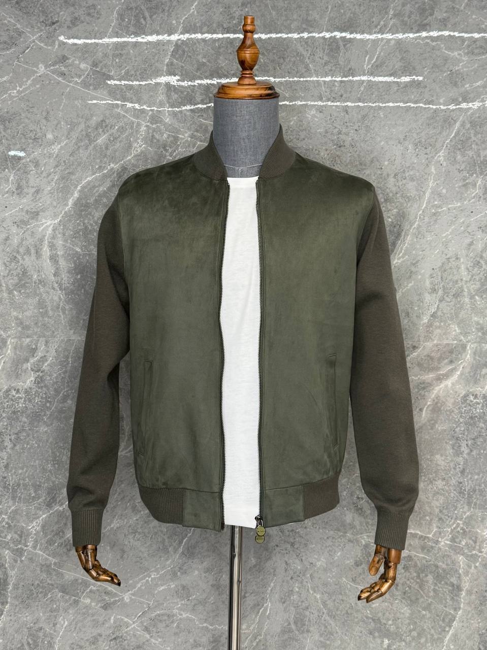 Мужская куртка Kiton BMS-151583 - стильный бомбер, сочетающий в себе элегантность и комфорт. Модель выполнена в приглушенном оливковом цвете, что делает ее универсальной для создания различных образов.