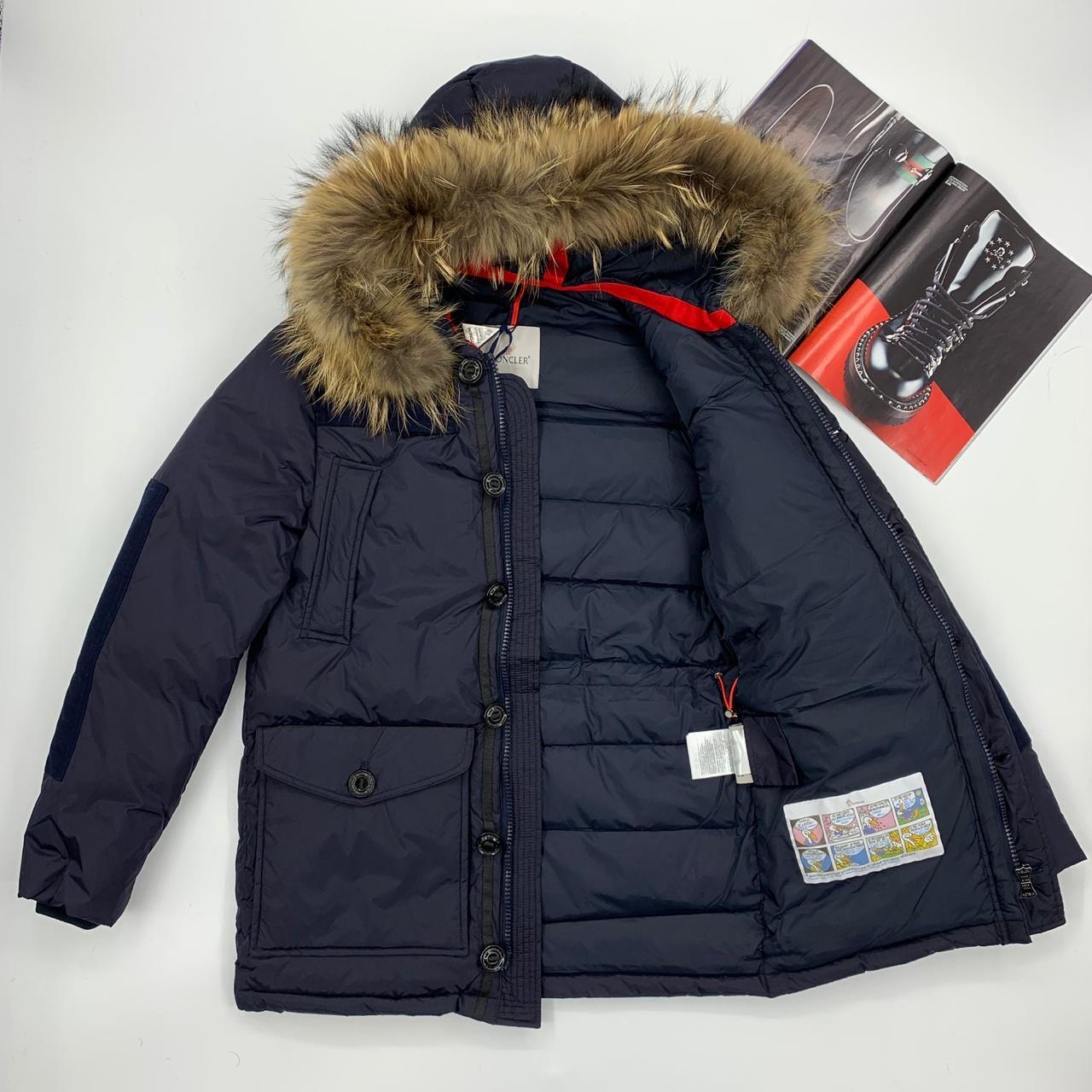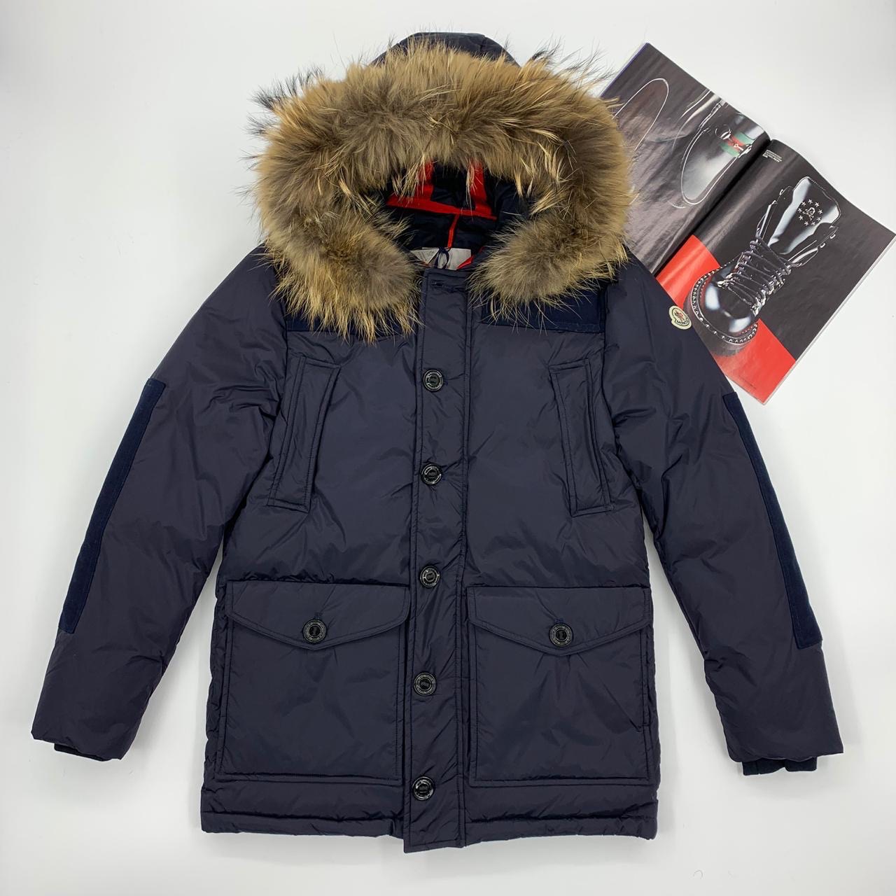 Мужская куртка Moncler BMS-47450 темно-синего цвета выполнена в классическом парка-стиле, идеально подходящем для холодной погоды. Модель отличается объемным капюшоном с натуральным мехом, множеством функциональных карманов и премиальными материалами, обеспечивающими комфорт и долговечность.