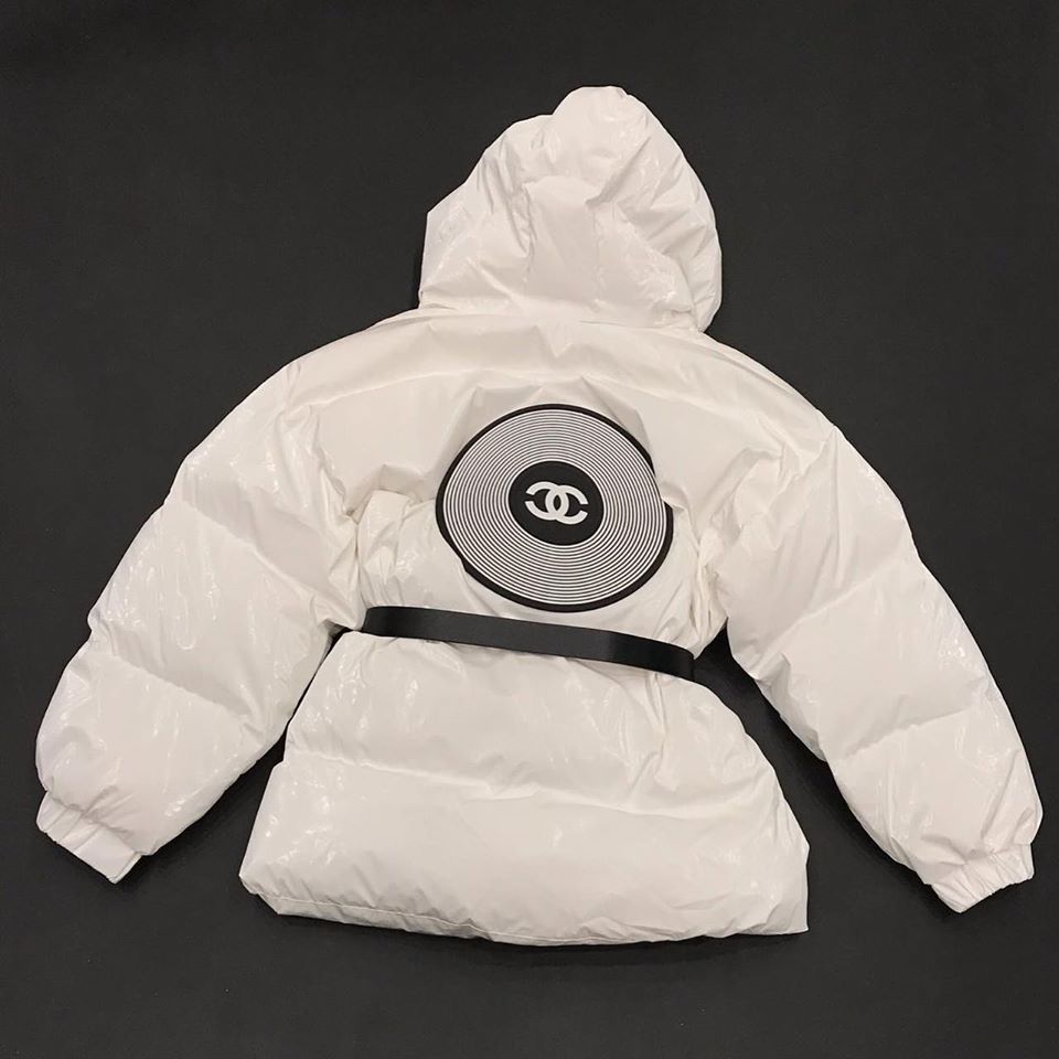 Эффектная женская куртка Chanel BMS-49020 выполнена в глянцевом белом цвете, придавая образу элегантность и современность. Объемный силуэт и капюшон обеспечивают комфорт и защиту в прохладную погоду. В комплекте идет стильный черный пояс, который подчеркивает талию и добавляет изысканности.
