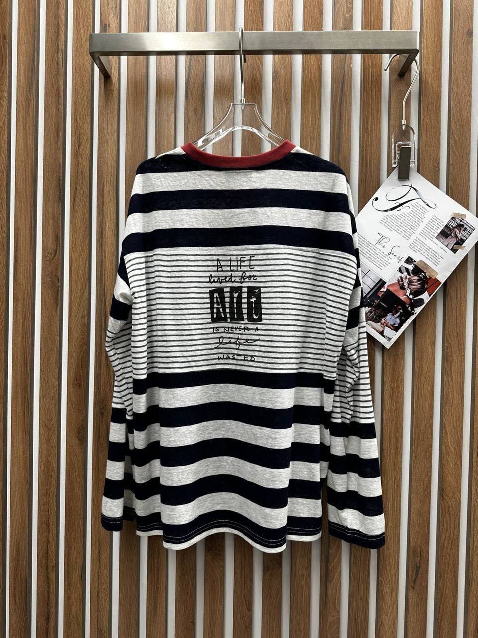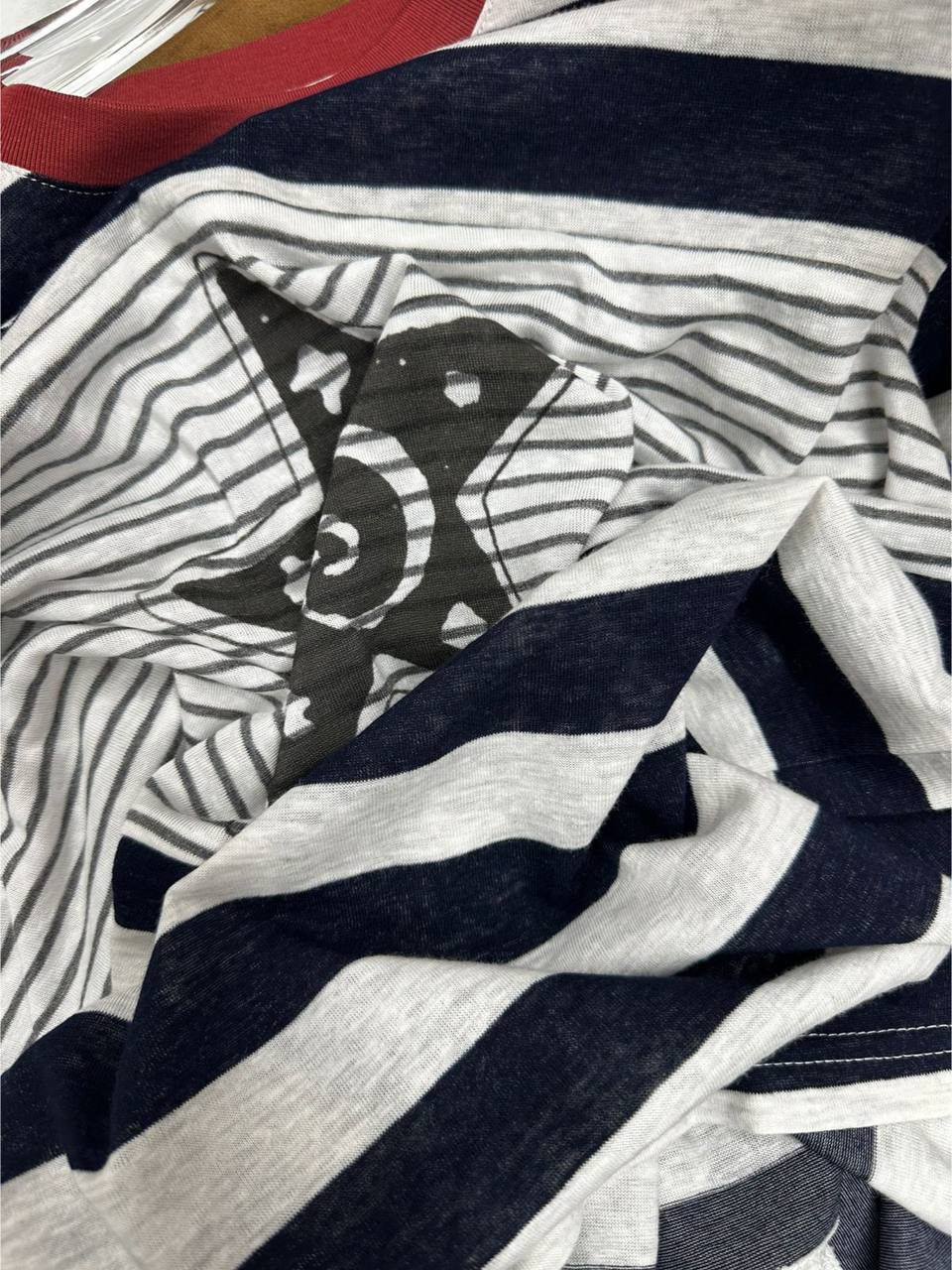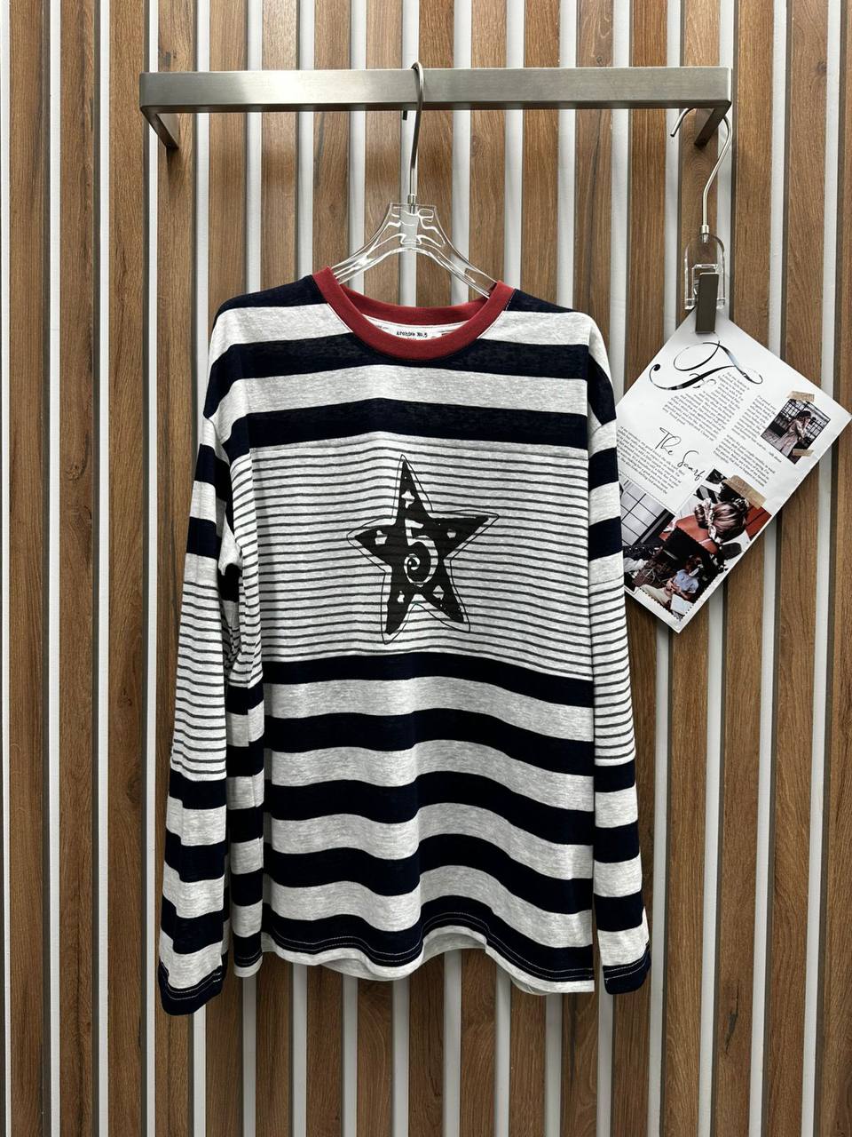 Лонгслив BMS-157116 в полоску - это стильный и удобный выбор для повседневного гардероба. Сочетание классического дизайна и оригинального принта делает его интересным акцентом в любом образе.