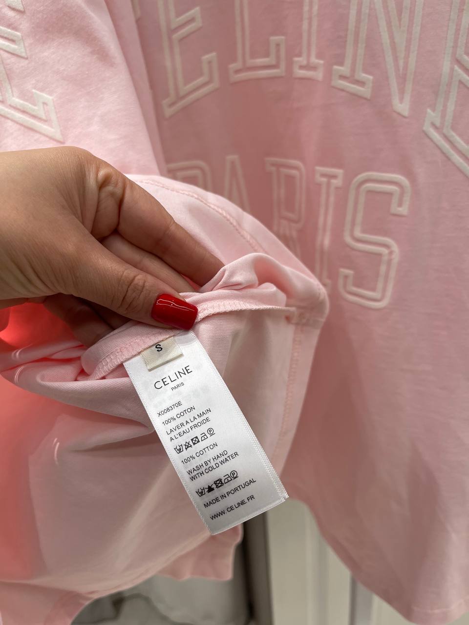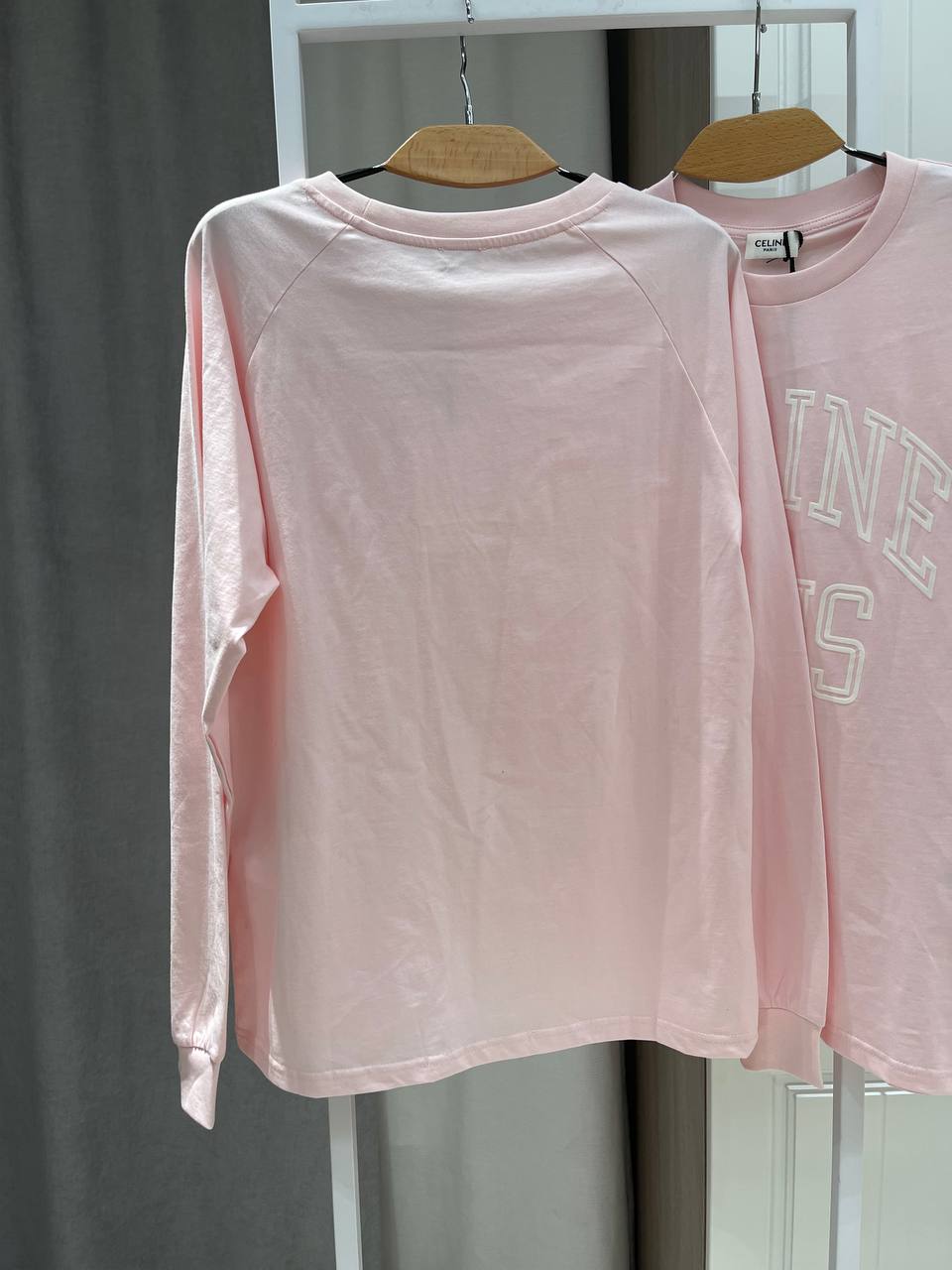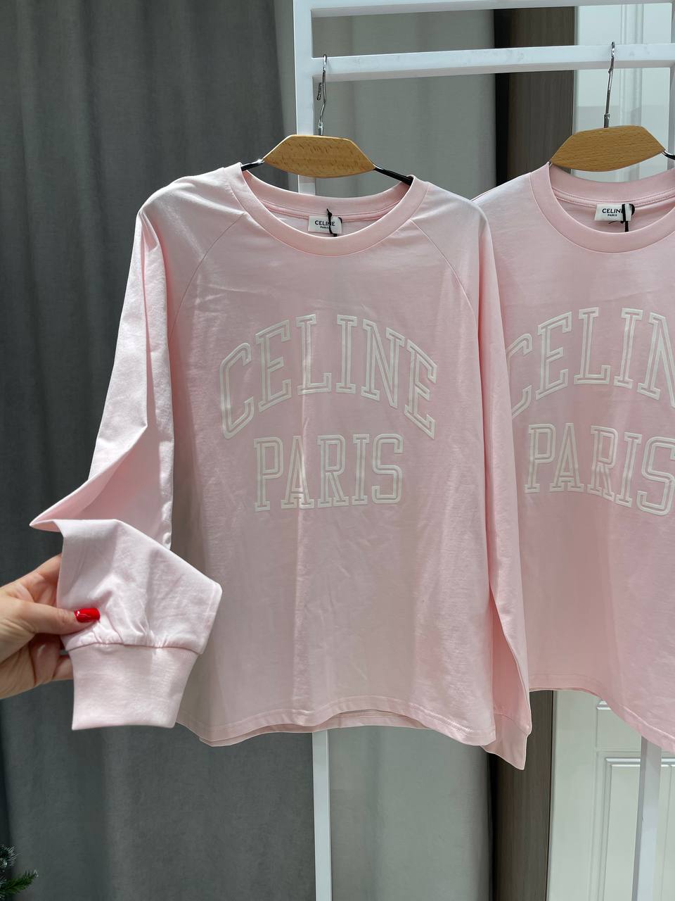 Лонгслив Celine BMS-153874 - это стильная и удобная вещь для повседневного гардероба. Модель выполнена в нежном розовом цвете с крупным принтом "CELINE PARIS" на груди.