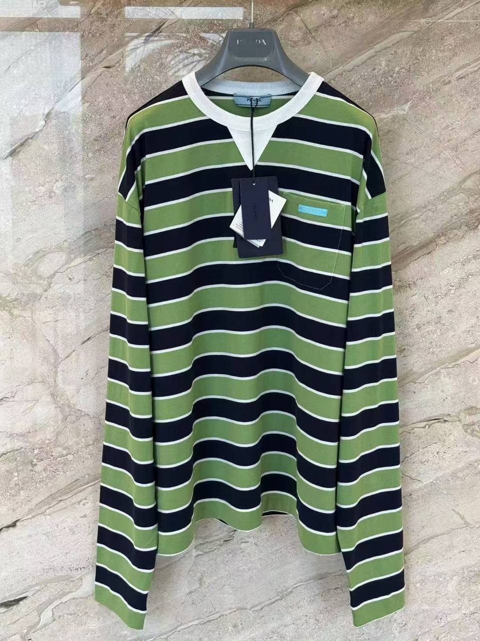Лонгслив Prada BMS-156513 представляет собой стильную и удобную вещь, идеально подходящую для создания непринужденного образа. Модель выполнена в трендовом полосатом дизайне с контрастными цветами и дополнена накладным карманом на груди.