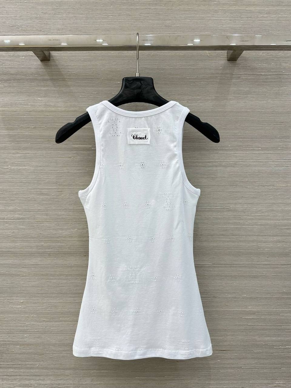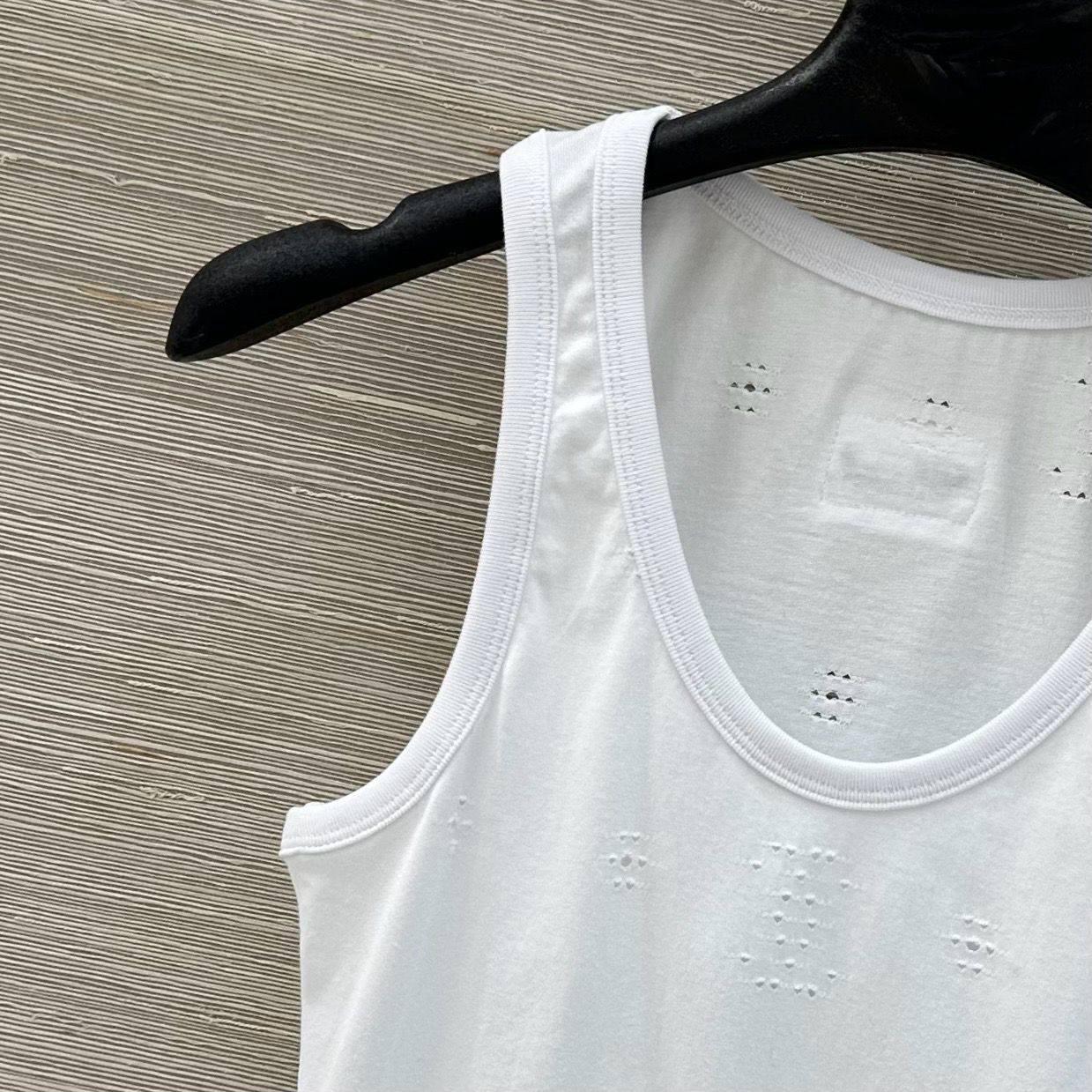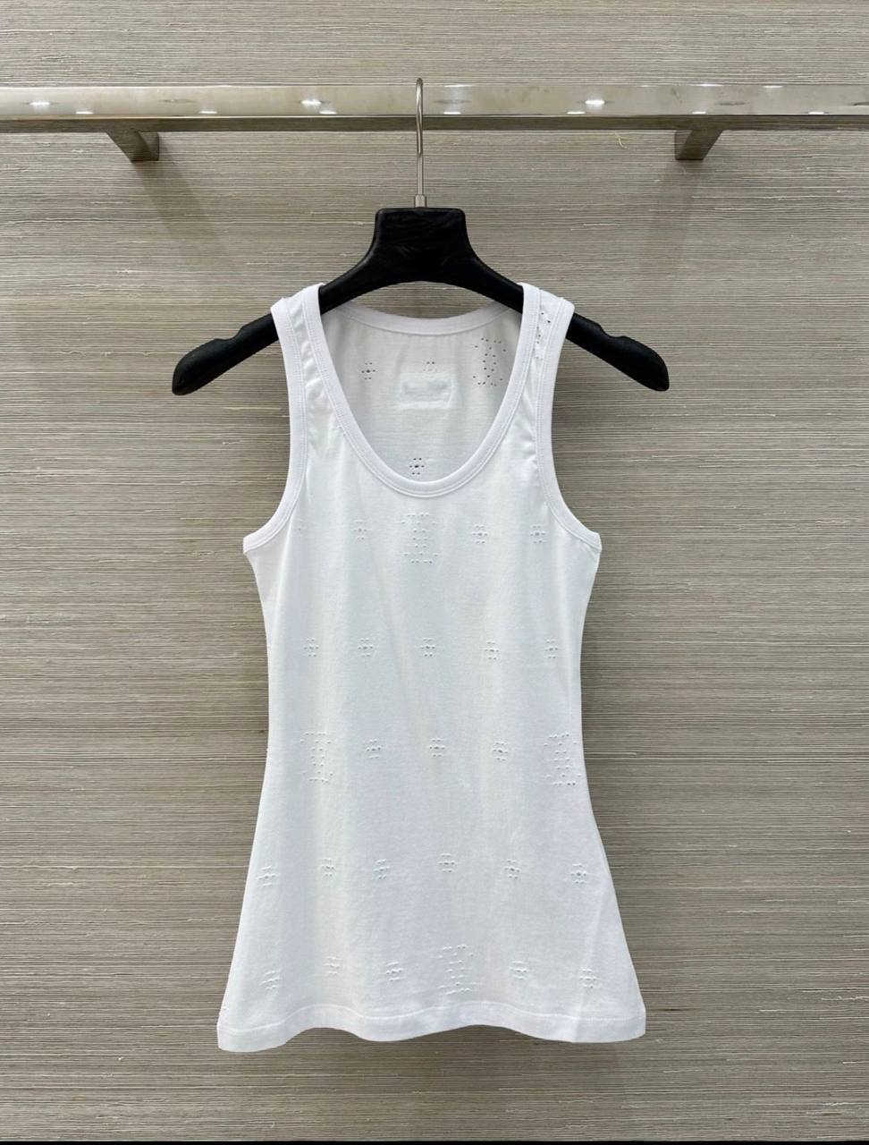 Майка Chanel BMS-155920 - это стильный и лаконичный элемент гардероба. Модель выполнена в минималистичном дизайне с перфорированным логотипом бренда по всей поверхности.