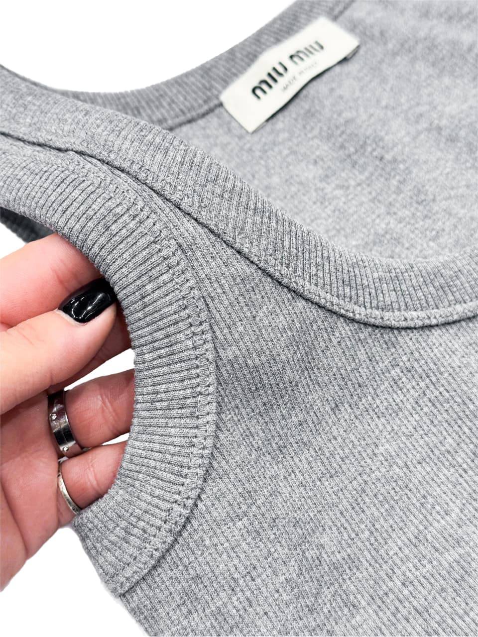 Майка Miu Miu BMS-157502 – это стильный и лаконичный выбор для создания модных образов. Идеально подходит для повседневной носки, сочетается с различными элементами гардероба.